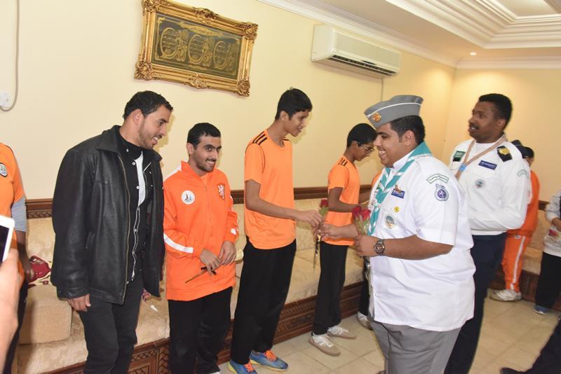 كما استقبل النادي وفدًا من جوالة الكلية التقنية بالجوف قدموا من خلالها الورود للحضور و استمعوا لشرح موجز عن الفئات المستفيدة من الألعاب المختلفة و تصنيف اللاعبين طبيًا و رياضيًا ، و تجول الوفد داخل النادي للتعرف على الخدمات التي يقدمها النادي للمستفيدين .