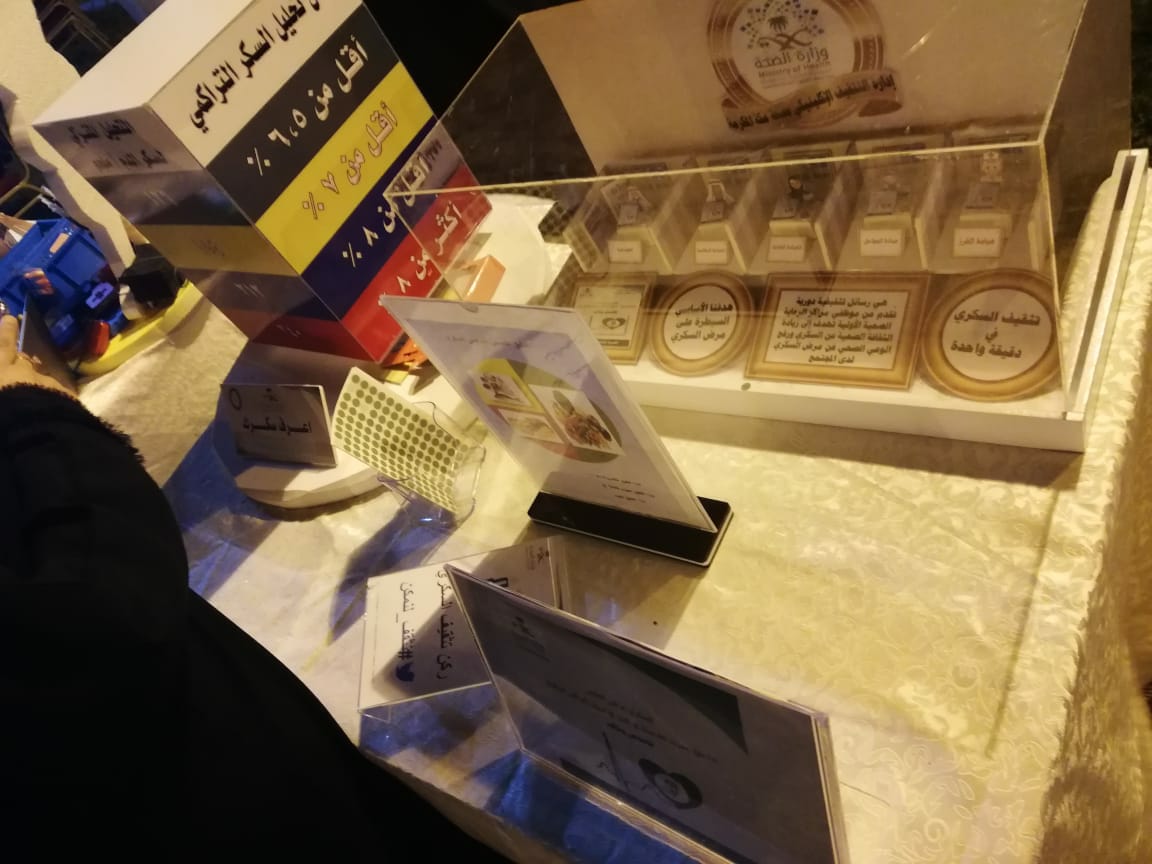 – ركن تثقيف الدقيقة الواحدة للسكري ( الصحة تنتفض للسكري ) حيث يتم قياس السكر للزائرين بعد توعيتهم