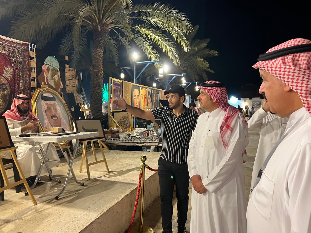 حيث تجول “العّياد” في جميع أركان الفعالية “بيت حائل” وشاهد لوحة تشكيلية تعرّف الزوار بالإرث التاريخي للمنطقة ،وتضفي جمالاً على أجواء المهرجان التراثية المتنوعة و رسوم جداريات ،وزاوية الخط العربي ،وكذلك الرسم على السجاد،والحرق على الخشب ،والرسم على المرايا ،وعلى البوب آرت ،بالإضافة إلى الرسم بالفحم وعلى الديباج والكتابه بالشمع .