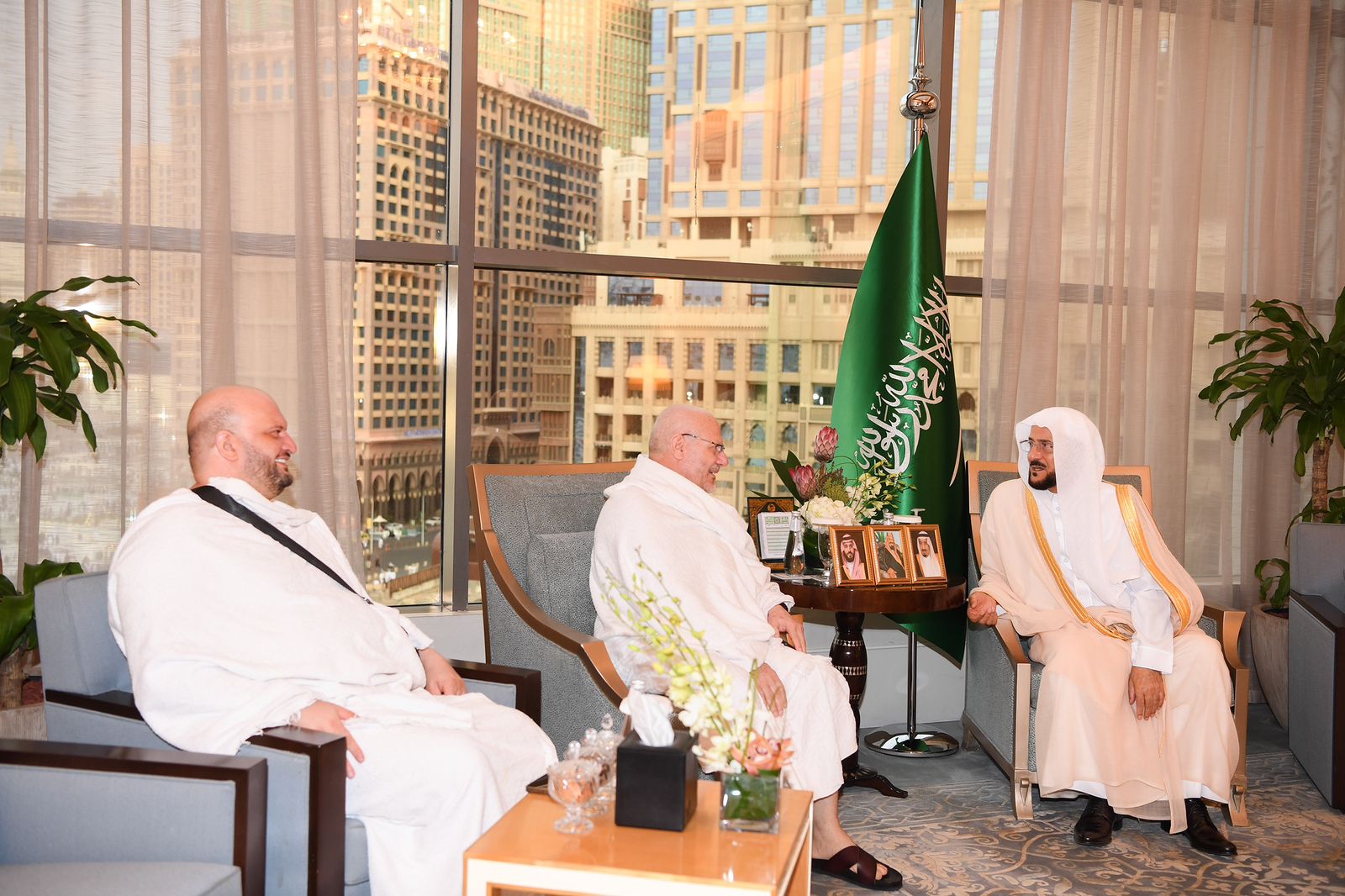 وفي مستهل اللقاء رحب معالي الوزير بالمفتي علام متمنياً له طيب الإقامة في بلده الثاني المملكة العربية السعودية، وقضاء أيام جميلة بجوار البيت الحرام، مشيداُ بعلمه واعتداله ووسطيته وما لهذا من أثر بالغ كونه مفتي دولة عربية وإسلامية كبرى.