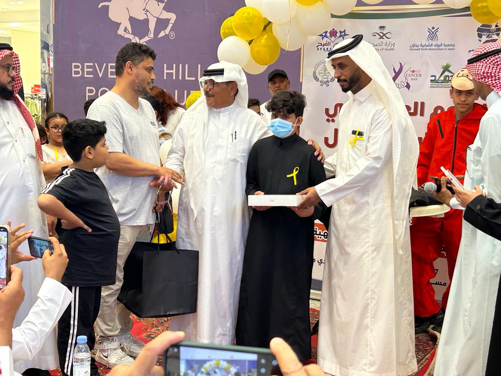نظمَ فريق نتراحم التطوعي التابع لجمعية الرواد الشبابية والفريق الصحي بالشؤون الصحية بمنطقة جازان وبالشراكة مع جمعية الملك فهد النسائية وفريق نجوم الفرح التابع لجمعية خويد فعاليات ” اليوم العالمي لسرطان الأطفال ” بحضور مرضى متعافي السرطان وعلى راسهم أ. بدرية الصوفي بمجمع كادي مول التجاري .