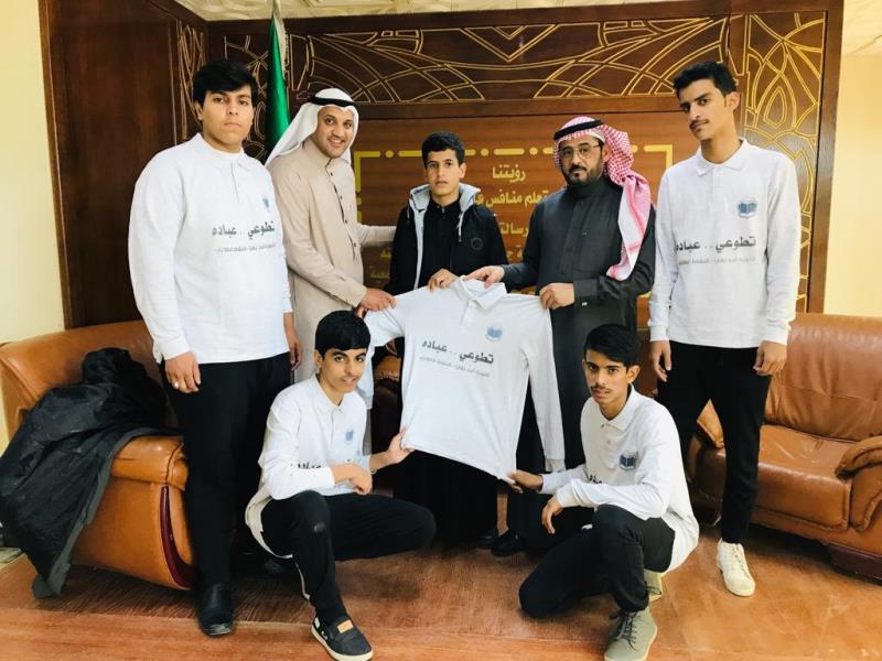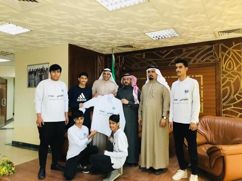 دشن مساعد المدير العام للتعليم بمنطقة الجوف للشؤون التعليمية الأستاذ عبدالله بن أحمد الزيدان بمكتبه بالإدارة و بمناسبة اليوم العالمي للتطوع ؛ فريق مدرسة أحد الثانوية بقارا التطوعي تحت شعار #تطوعي_عباده ، ، و ذلك خلال استقباله للطلاب المشاركين بالبرنامج ، بحضور و متابعة مدير إدارة النشاط الطلابي بتعليم الجوف الأستاذ خالد بن عبيد الله القنيفذ ، و رئيس قسم النشاط الاجتماعي الأستاذ عبدالله بن صالح الخالدي .