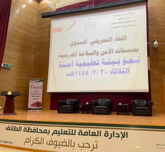 نفذت الإدارة العامة للتعليم بمحافظة الطائف ممثلًةً في إدارة الأمن والسلامة، اللقاء التعريفي السنوي لمنسقات الأمن والسلامة بالمدارس التابعة لمكاتب التعليم الداخلية تحت عنوان ( نحو بيئة تعليمية آمنة ) والمقام في مسرح إدارة التعليم بالحلقة” بنين”