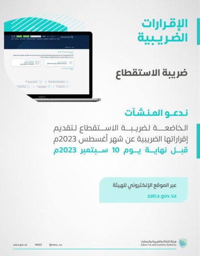 دعت هيئة الزكاة والضريبة والجمارك المنشآت الخاضعة لضريبة الاستقطاع في المملكة إلى تقديم إقراراتها الضريبية عن شهر أغسطس الماضي، وذلك في موعدٍ أقصاه 10 سبتمبر الجاري.