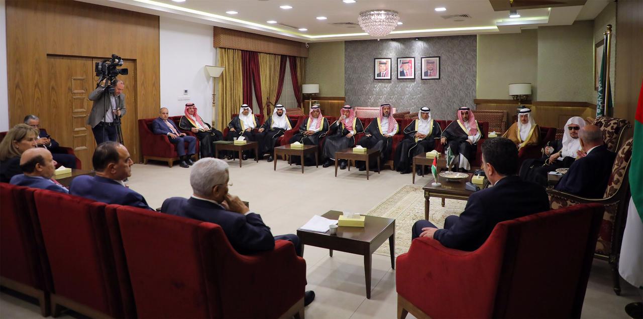 وتم خلال اللقاء، بحث أوجه العلاقات السعودية الأردنية، وسبل تعزيزها في مختلف المجالات، إضافة إلى مجمل الأوضاع الراهنة في المنطقة، وأهمية تفعيل العلاقات البرلمانية بين المملكتين الشقيقتين، خدمة للمصالح المشتركة والقضايا العربية العادلة.