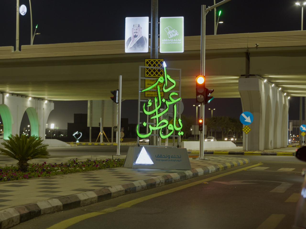 كما نشرت أمانة حائل 3000 علم وطني بمختلف الأحجام فى الطرق الرئيسية والتقاطعات الحيوية والميادين والجسور ، إلى جانب تركيب 1600 لوحة على أعمدة الإنارة، و 190 بنر ولوحة بالطرقات والجسور، و 140 مجسم بهوية اليوم الوطني، وجهزت 6 منتزهات وحدائق للفعاليات، و 6 مواقع لعروض الإضاءة الجبلية .