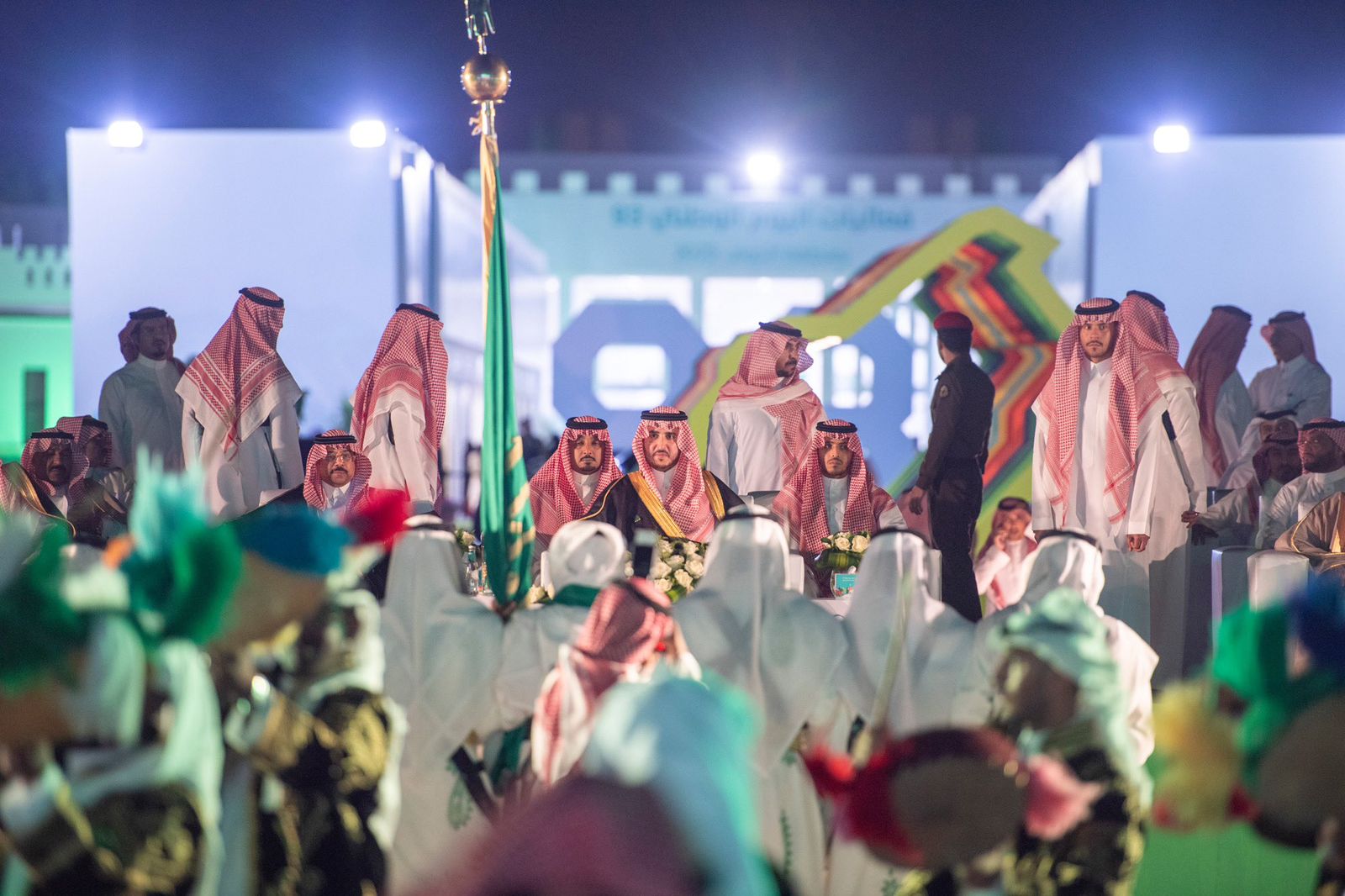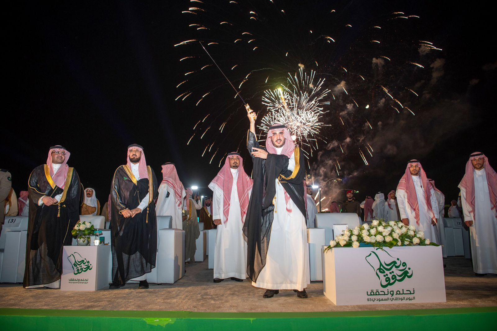 ثم حيّا سموه أهالي المنطقة وهنأهم بهذه المناسبة العزيزة التي تجسّد مشاعر الحب والولاء والانتماء للوطن وقيادته الحكيمة في اليوم الوطني، لتوحيد بلادنا على يد المؤسس الملك عبدالعزيز بن عبدالرحمن آل سعود – طيب الله ثراه -، ثم عُزِف السلام الملكي، بعد ذلك بدأ الحفل المُعّد بهذه المناسبة بتلاوة آيات من القرآن الكريم، ثم ألقيت قصيدة شعرية بهذه المناسبة أعقبها العمل الفني “جوف الوطن”، ثم العرض المسرحي (أحلامنا سعودية)، ثم قُدِّم أوبريت وطني بمشاركة عدد من الفنانين.