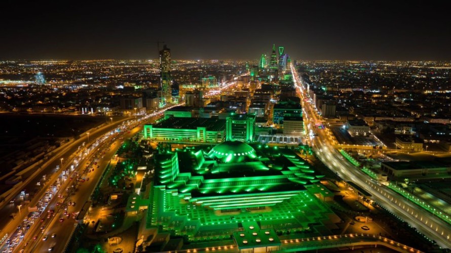 تزين مبنى وزارة الداخلية بمدينة الرياض باللون الأخضر تفاعلاً مع مناسبة اليوم الوطني الـ93 للمملكة.