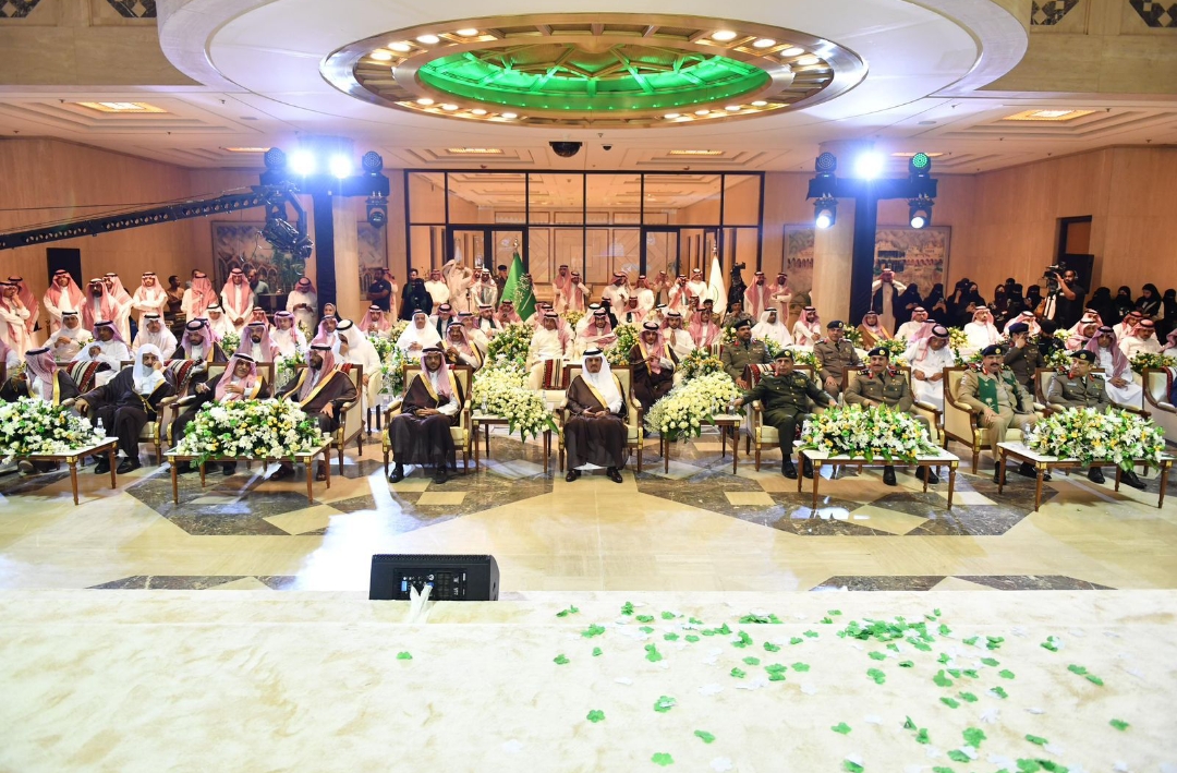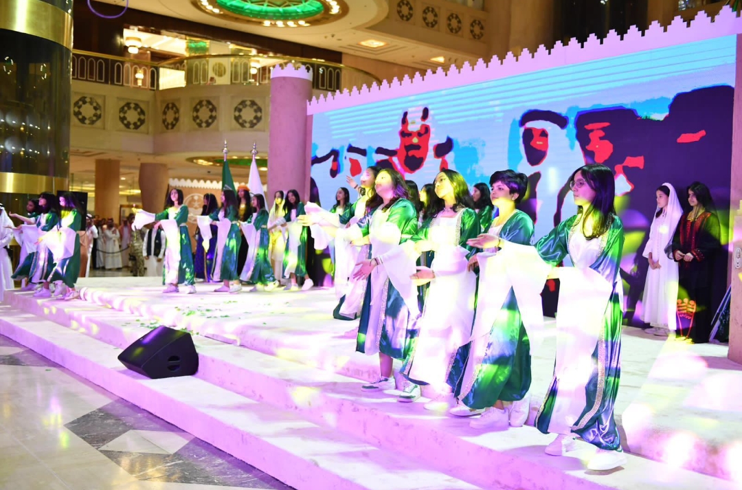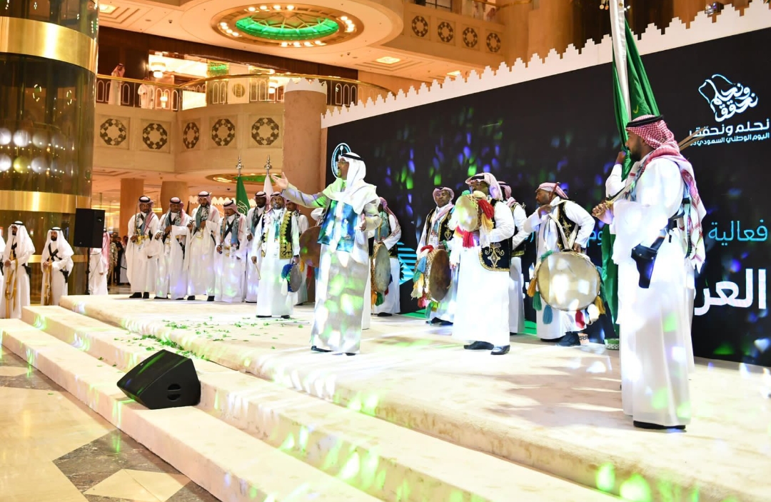 وشهد الحفل مشاركة إمارات المناطق بأركان تعكس تراث كل منطقة، واستعراض معالمها السياحية والمشاريع التنموية ضمن رؤية السعودية 2030، وتضمن العرضة السعودية، وأوبريت “مولد أمة”، ومعزوفات وطنية، تعبيرًا عن الفرحة بهذه المناسبة.