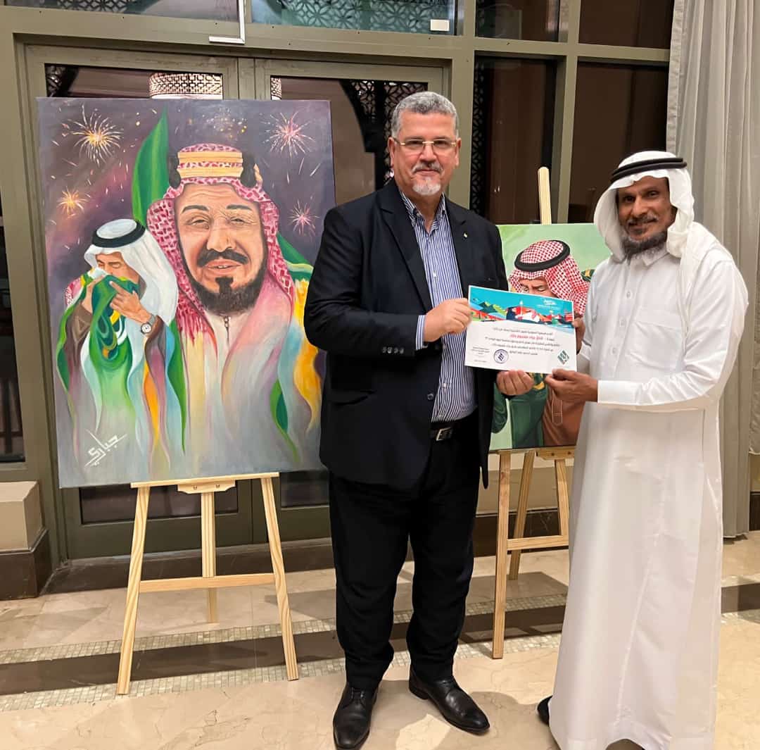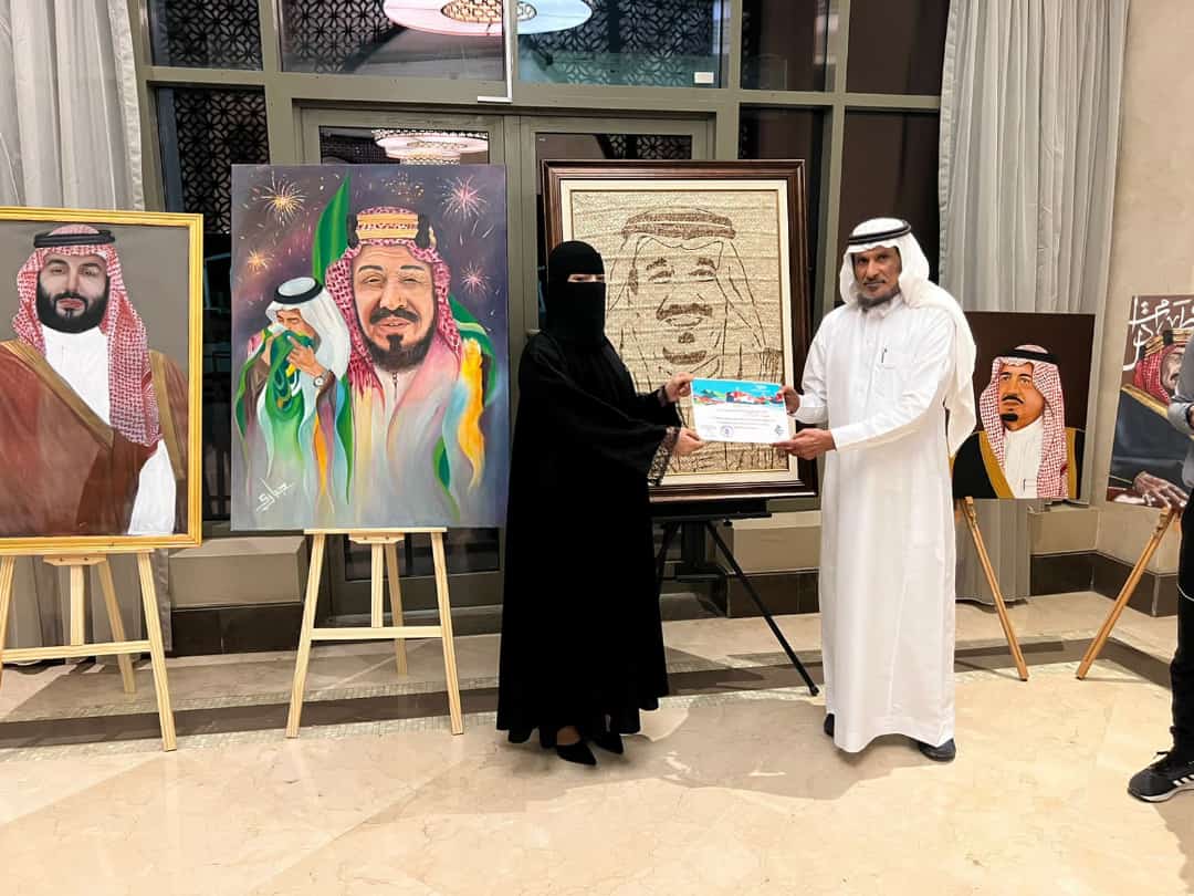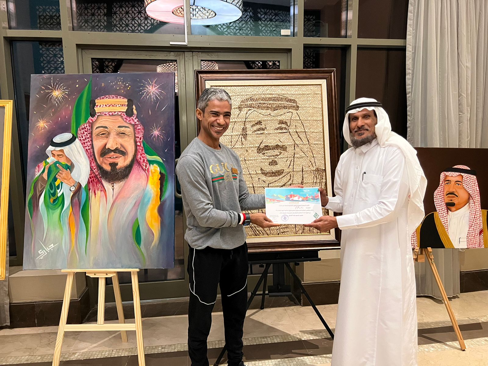 كرم رئيس الجمعية السعودية للفنون التشكيلية فرع جازان جسفت” الفنان التشكيلي الاستاذ رمضان بكرين الفنانين التشكيليين المشاركين في معرض البوم الوطني 93نحلم ونحقق والذي اقيم في فندق جراند ميلينيوم بجازان .