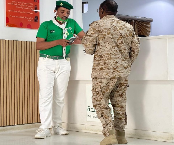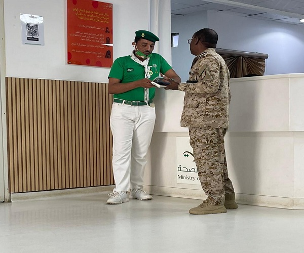 مدير التنسيق الطبي بمستشفى صامطة العام يرسم لوحة وطنية بمشاركته للمرضى والمراجعين فرحة اليوم الوطني