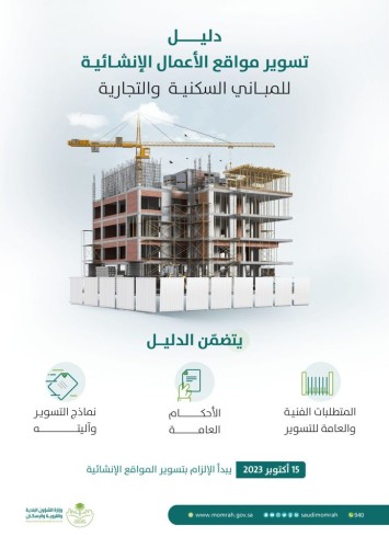 ويمكن الاطلاع على دليل تسوير مواقع الأعمال الإنشائية من خلال زيارة الرابط https://www.momrah.gov.sa/sites/default/files/2023-03/dlyl-tswyr-mwaq-alamal-alanshayyt.pdf.