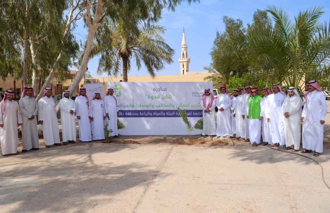 أطلق مدير عام فرع وزارة البيئة والمياه والزراعة بمنطقة حائل فهد بن معيض الحسني , اليوم الاثنين حملة “لنكن قدوه” لاستزراع مقرات الوزارةبالمنطقة والمكاتب والوحدات واسواق النفع العام وحقول المياه ومحطات المعالجة . حيث قام مدير عام الفرع بتدشين الحملة بتشجير مكتب الوزارة بحائل بحضور المختصين من ادارة البيئة بالفرع ومدير مكتب فرع الوزارة بحائل ومدير مركز تنمية الغطاء النباتي ومكافحة التصحر بمنطقة حائل
