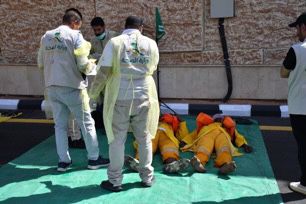 وأبانت صحة حائل؛ أنهُ تم خلال الخطة الفرضية تطبيق خطة الإخلاء والفرز الطبي للحالات بواسطة الكوادر الطبية، وهي كتالي: حالتان سوداء، وثلاث حالات حمراء، و أربع حالات صفراء، وثلاث أخرى حالات خضراء، وتم نقلها للمستشفيات بعد تقديم الإسعافات الأولية لها من خلال سيارات الإسعاف المتواجدة في موقع الحدث .