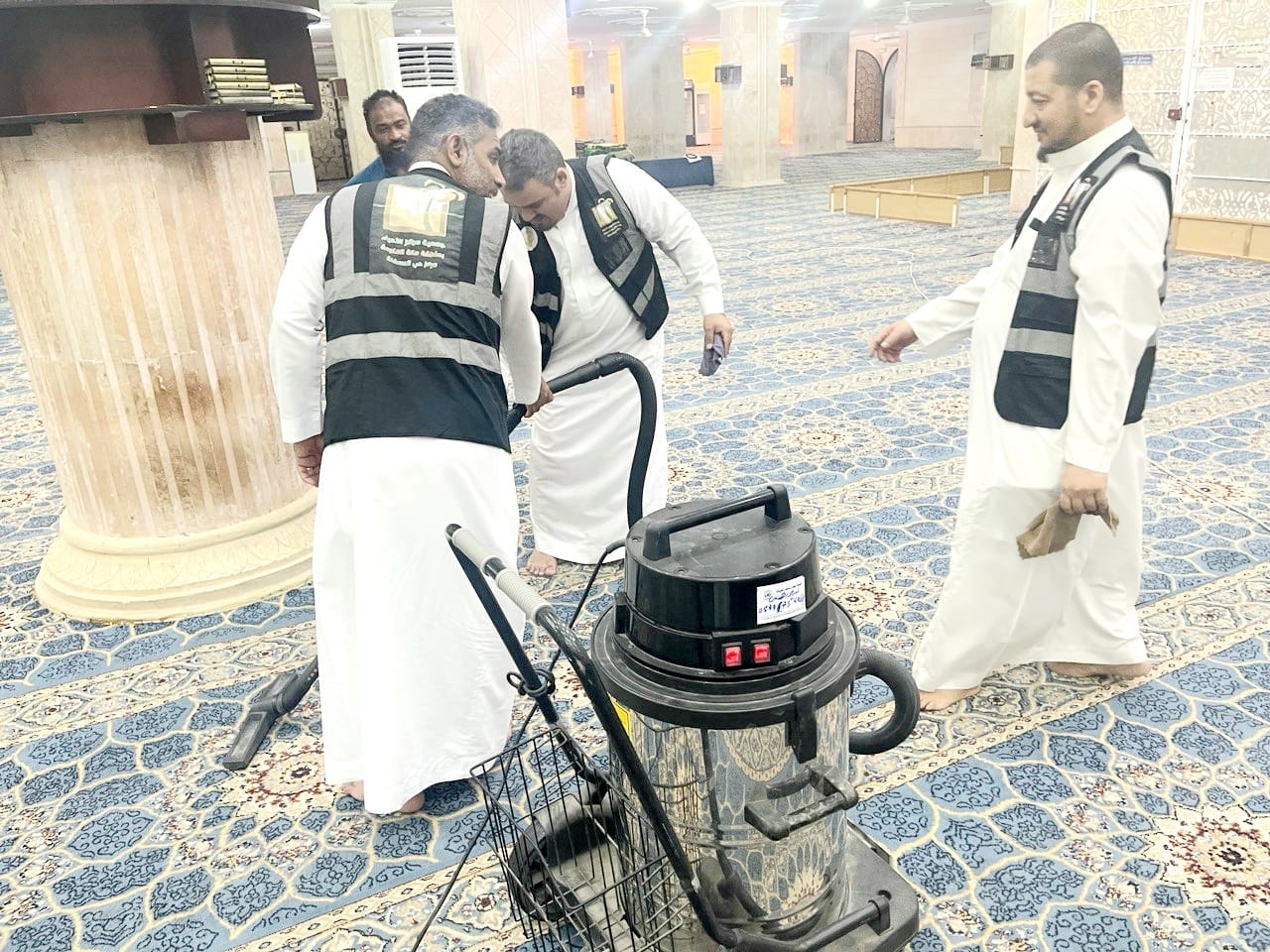 وتسابق الجميع في حماس كبير لتنظيف بيت الله وكسب الأجر العظيم المترتب على ذلك حيث سارع الجميع لتنظيف المصاحف والأرفف الخاصة بها وكنس السجاد وتعقيمه وتعطيره وتنظيف المكيفات وتعطيرها وتنظيف بقية مرافق الجامع.