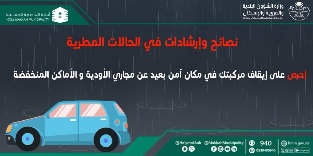 وكانت أمانة العاصمة المقدسة قد بثَّت عبر قنواتها الرسمية في وسائل التواصل الاجتماعي- رسائل ارشادات ونصائح توعوية متكاملةً إضافة إلى إبراز الجهودها الميدانية الهادفة إلى المحافظة على سلامة الأرواح والممتلكات من خلال معالجة أي تجمعات لمياه الأمطار وإزالة الاثار الناجمة ضمن النطاق الاشرافي ، إلى جانب مباشرتها الفورية للبلاغات الواردة عبر نظام “بلدي”.