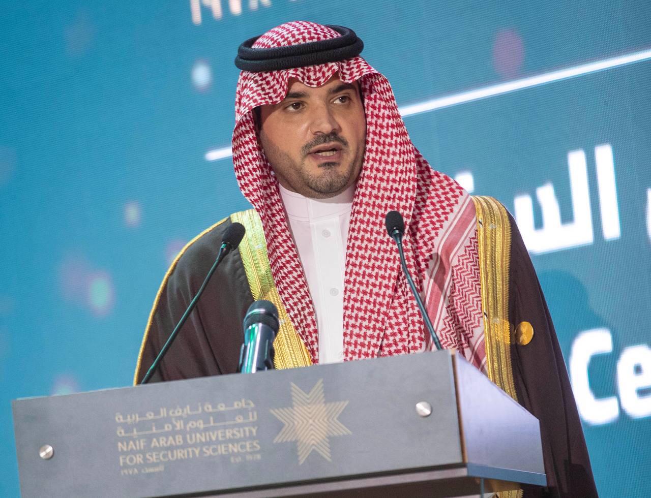 ورفع سموه في كلمة ألقاها خلال الحفل خالص الشكر والتقدير إلى خادم الحرمين الشريفين الملك سلمان بن عبد العزيز آل سعود، وصاحب السمو الملكي الأمير محمد بن سلمان بن عبد العزيز ولي العهد رئيس مجلس الوزراء – حفظهما الله- على رعايتهما ودعمهما غير المحدود لجامعة نايف العربية للعلوم الأمنية، وحرصهما الدائم على دعم كل ما يسهم في ترسيخ وتقوية الأمن العربي المشترك، معرباً سموه عن شكره لأصحاب الفخامة والسمو قادة الدول العربية الأعضاء على ما تلقاه الجامعة من اهتمام ودعم مستمرين.