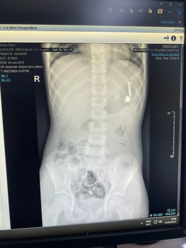 تمكن بفضل الله تعالى فريق طبي بمستشفى الولادة والأطفال عضو تجمع مكة المكرمة الصحي من إخراج سماعة جوال من داخل جوف طفل يبلغ من العمر ١٠ سنوات حيث حضر الطفل مع أهله إلى الطوارىء بعد ابتلاعه للسماعة.