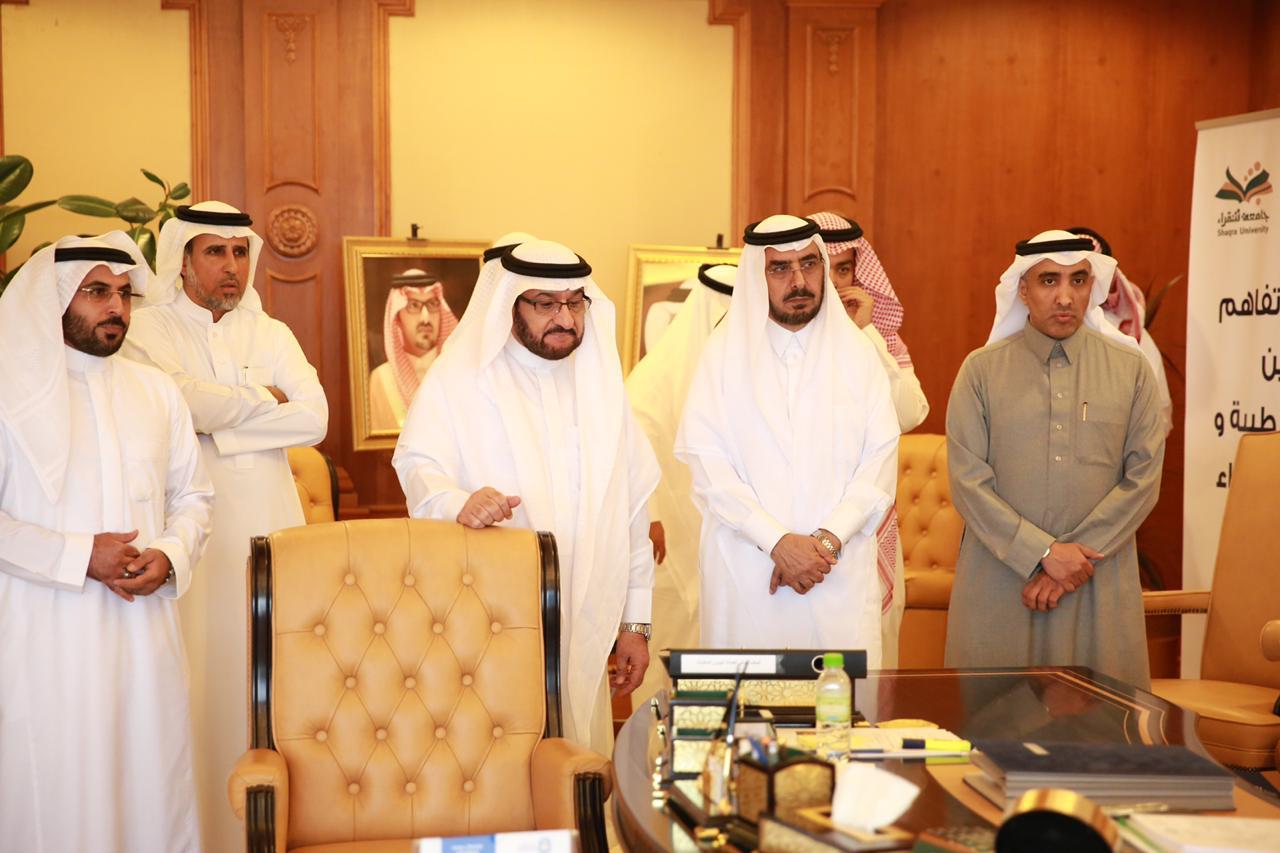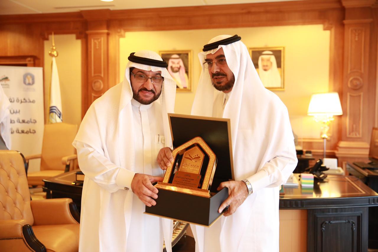 زار وفد من جامعة شقراء برئاسة معالي مدير جامعة شقراء الاستاذ الدكتور عِوَض بن خزيم الاسمري جامعة طيبة لتوقيع اتفاقية تعاون مشترك في عدد من المجالات.