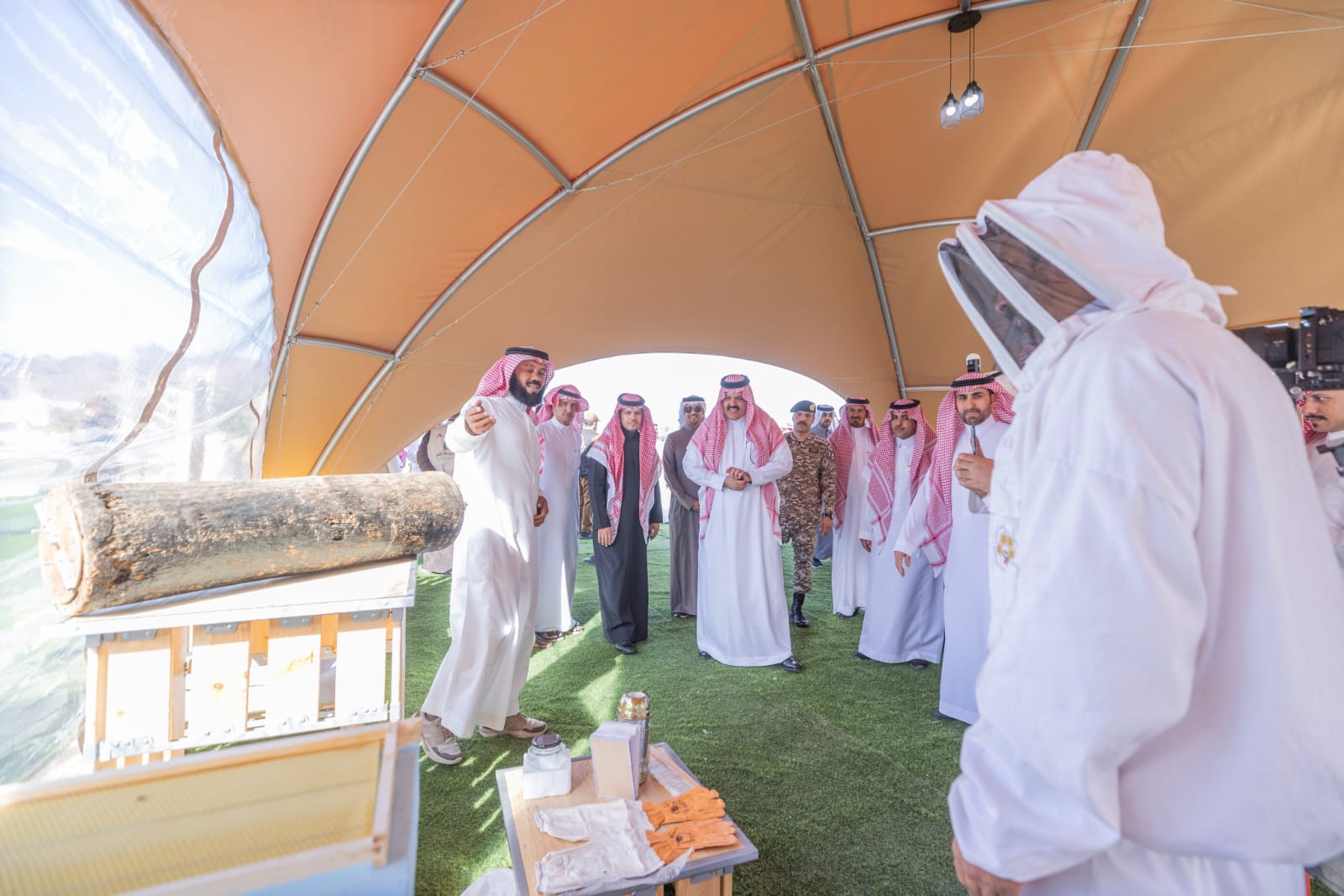 إثر ذلك دشن الأمير عبدالعزيز بن سعد أعمال الجمعية التعاونية لتربية النحل، مستمعاً لشرح عن أبرز أهدافها وخططها المستقبلية.