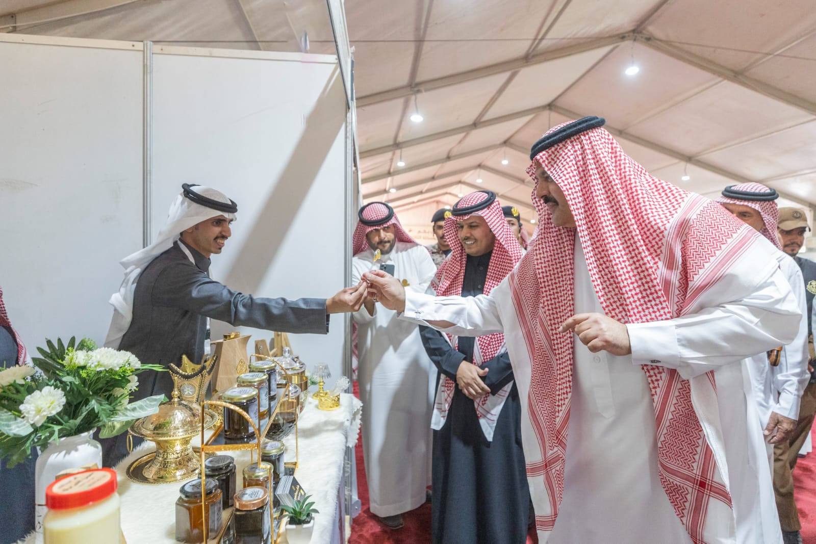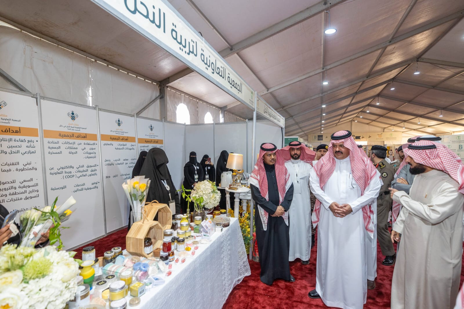 وتجول سموه على أركان المعرض الذي يشتمل على عروض لأنواعٍ مختلفة من العسل، الذي تتميز به منطقة حائل مثل عسل السدر، وعسل الطلح، وعسل الأثل، وعسل الشفلح، وعسل الضمخ ” العرن”، والعديد من الأنواع المختلفة، حيث شارك في عرض هذه الأنواع 35 نحال ونحالة من مختلف النحالين بالمنطقة.