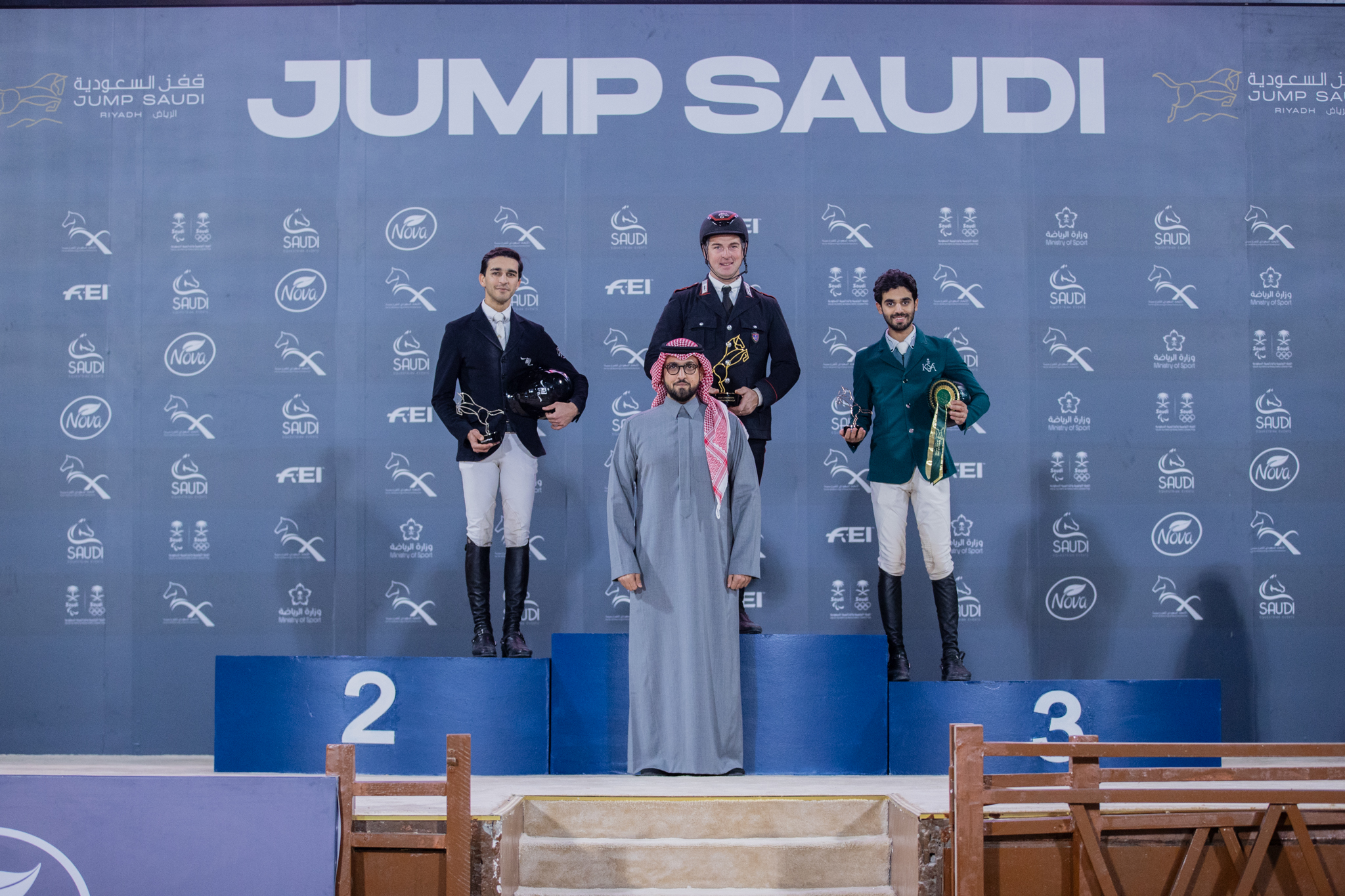 وكان اليوم الثاني قد انطلق بشوط “جولة وجولة تمايز” ـ ارتفاع 1.20 متر ـ لفئة النجمة الواحدة، حيث توج بالمراكز الثلاثة الفرسان السعوديين، الأول عبد الرحمن الراجحي بزمن وقدره 36.09 ثانية، والثاني عبد المجيد الخماش (37.87 ثانية)، والثالث محمد الحميدان (44.50 مترا).