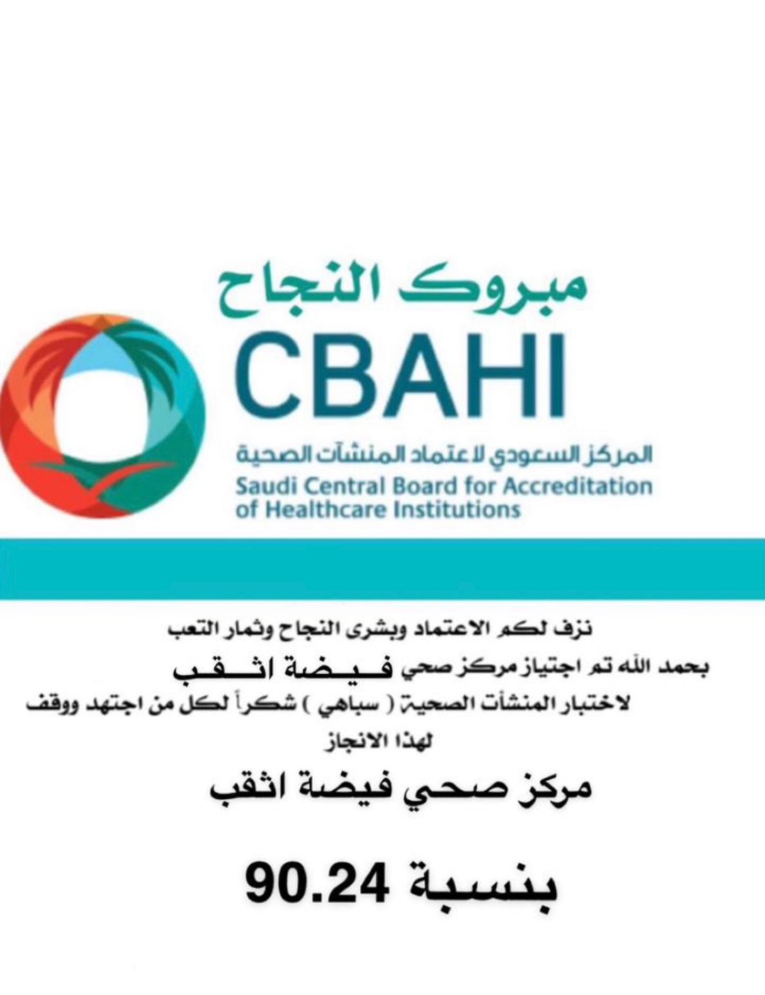 اعتمد المركز السعودي للمنشآت الصحية “سباهي” منح مركز صحي فيضة أثقب شهادة الاعتماد بعد حصوله على نسبة 90.24%