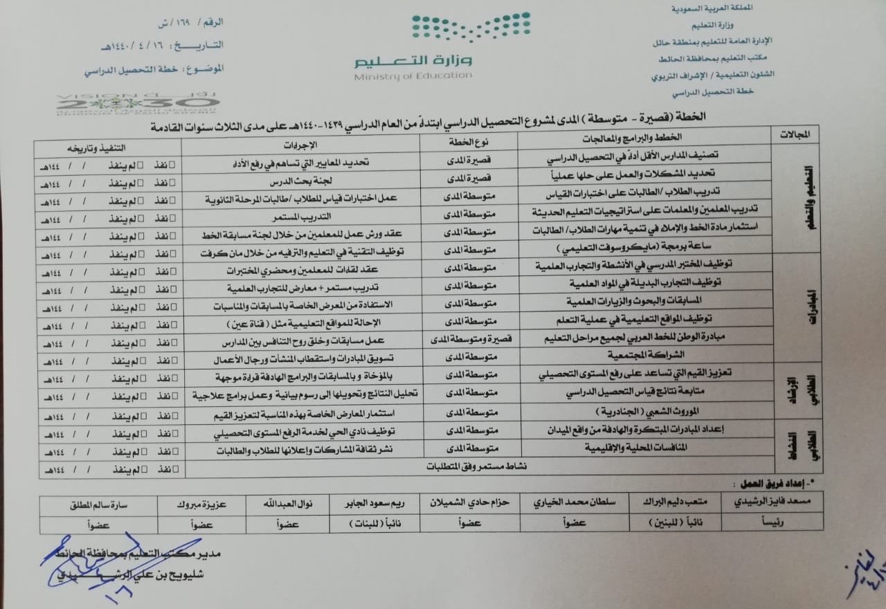 اعتمد مكتب تعليم الحائط التابع لإدارة تعليم حائل برئاسة الأستاذ شليويج بن علي النافع صباح اليوم الأحد الموافق 16 ربيع الآخر 1440 خطة التحصيل الدراسي وذلك على المدى القصير والمتوسط خلال الثلاث سنوات القادمة وللرفع من المستوى التحصيلي للطلاب والطالبات.