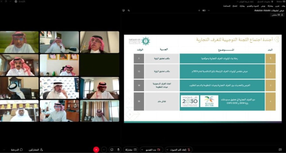وناقش الاجتماع دور الغرف التجارية في تحقيق مستهدفات رؤية المملكة 2030، واستضافة الرياض إكسبو 2030، والمساهمة في تطوير المنظومة التجارية، ومواكبة المبادرات والمشاريع المحورية، والعمل على التحول الرقمي ومشاريع الربط التقني، والرفع بالتحديات التي تواجه القطاع الخاص بشكل دوري لتتم معالجتها وتحويلها إلى مبادرات تساهم في تنمية الاقتصاد.
