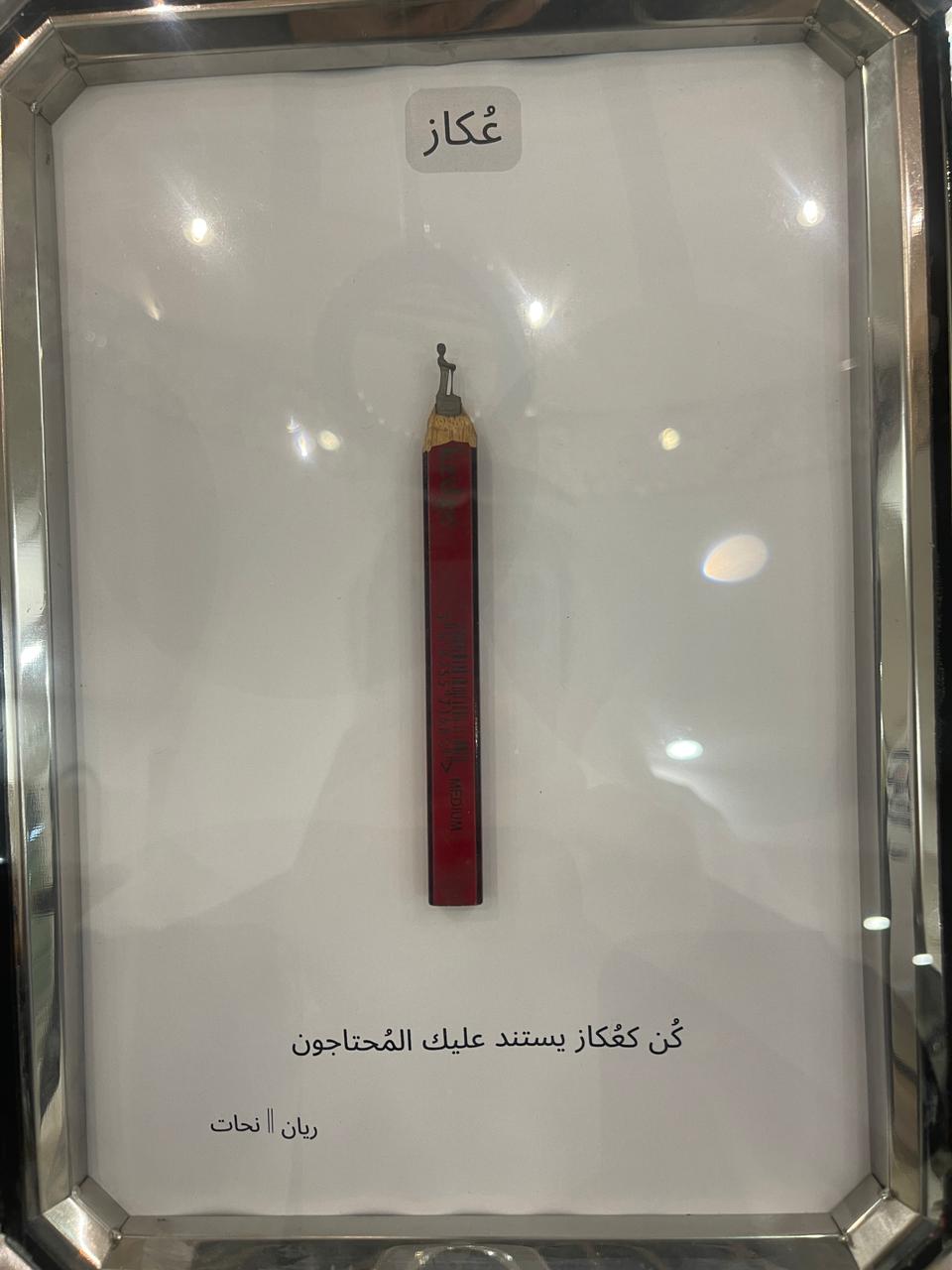 وأشار إلى أنه يحاول أن يصنع منحوتة صغيرة، لكن قصتها تكون كبيرة داخل قلم الرصاص، مشدداً على أنه يهدف من وراء منحوتاته أن يأتي الزوار ليشاهدوا كل أعماله ويتقربون لها ولم يكتفوا بمشاهدتها من بعيد.