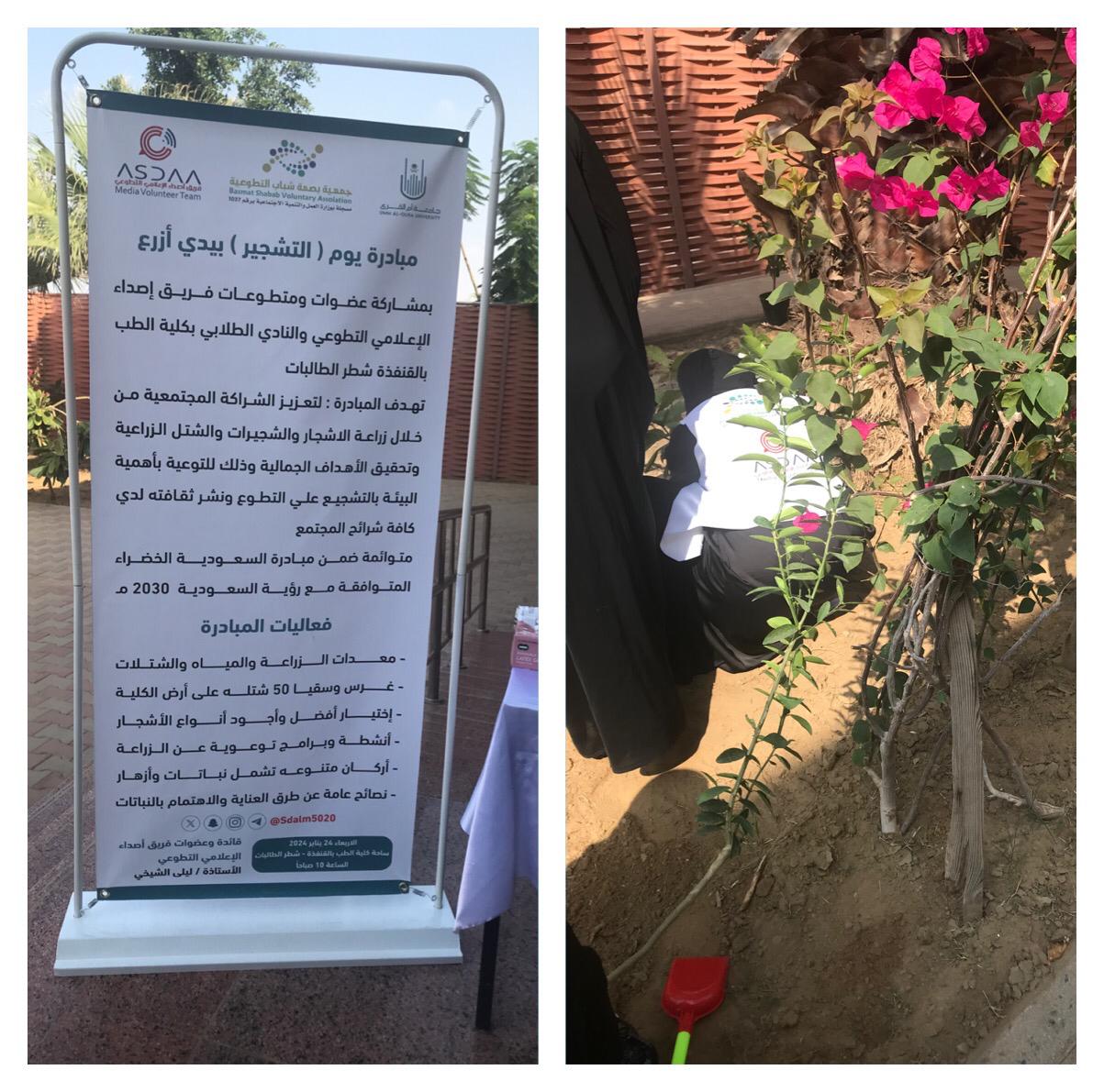 أصداء الاعلامي التطوعي والنادي الطلابي يطلقان مبادرة تشجير بيدي أزرع …بمبنى كلية الطب بالقنفذة