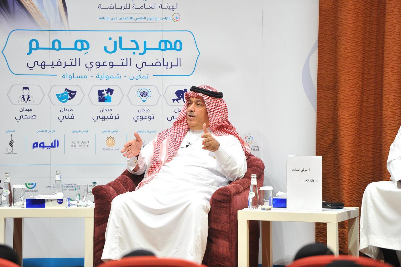 وأكد السنيد دعم الهيئة العامة للرياضة لمهرجان همم لأسر ذوي الإعاقة بكافة الاحتياجات الكفيلة بنجاح فعالياته المتنوعة التي ستكون وسيلة متميزة لخدمة ذوي الإعاقة وأسرهم وتأهيلهم بمختلف المجالات الحياتية ، منوها إلى الدور الكبير الذي تبذله جمعية همم لخدمة أصحاب الهمم ودمجهم بالمجتمع .