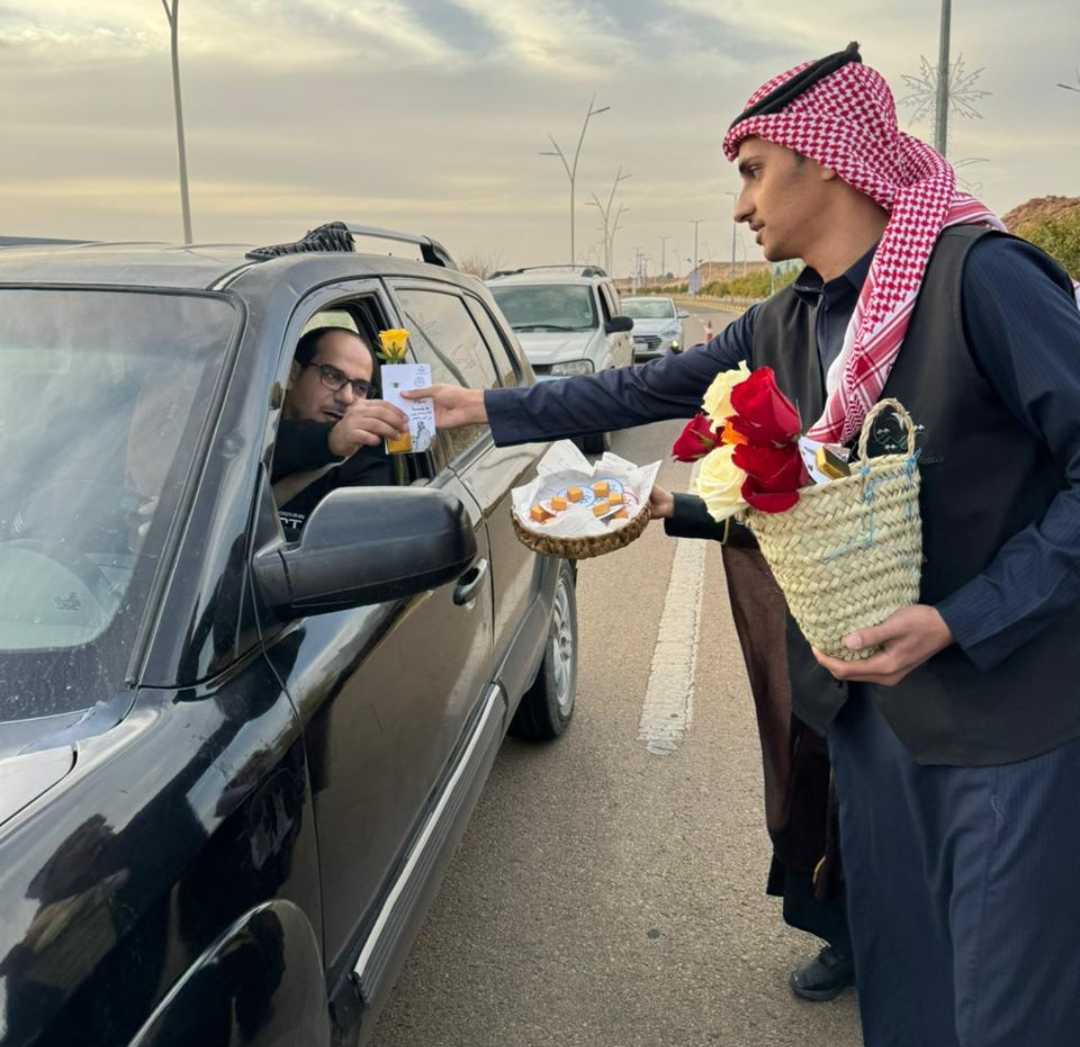 وتضمنت الفعاليات توزيع الهدايا والحلويات وباقات الورود،و”بروشورات” تحمل عبارات تحاكي تاريخ التأسيس، على المواطنين والمقيمين والأطفال بالطرقات والميادين،