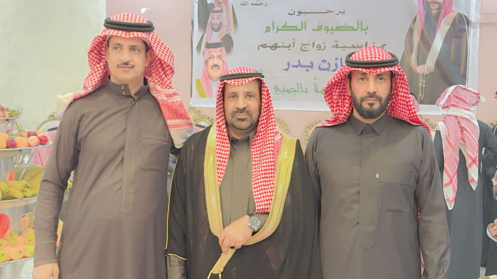 احتفل مساء اليوم الجمعة،1445/8/13 هــ أبناء المرحوم «عبيد عتيق القلادي»، بزواج ابنهم “مازن بدر”، وذلك بمدينة الحليفة جنوب حائل.