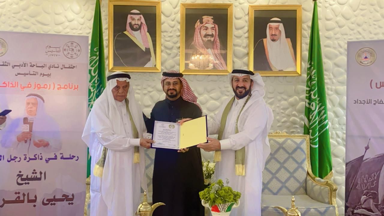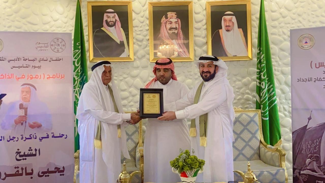 ومن خلال برنامج النادي (رموز في الذاكرة )والذي نحتفي فيه برموز منطقة الباحة في مختلف التخصصات من كان حيا منهم ومن انتقل الى رحمة الله وفي إطار هذا البرنامج لدينا مبادرة نبيلة بعنوان(من حقهم علينا) نحتفي فيها برموز المنطقة الكبار في منازلهم تقديرا وإجلالاً لهم
