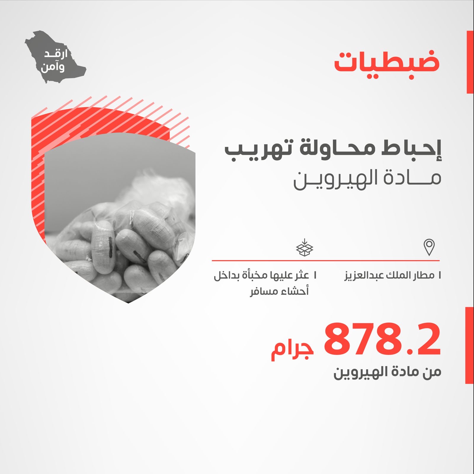 تمكنت هيئة الزكاة والضريبة والجمارك في مطار الملك عبدالعزيز الدولي بجدة، من إحباط عدد من المحاولات لتهريب أكثر من 2 كيلوجرام من الكوكايين و 878.2 جرام من الهيروين.