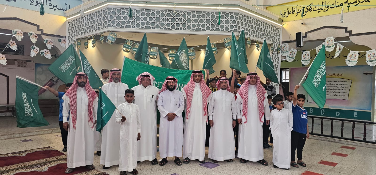 وبهذه المناسبة رفع مدير مدرسة عتبة الاستاذ عماد محمد الصبحي أسمى آيات التهاني لمقام خادم الحرمين الشريفين الملك سلمان بن عبد العزيز آل سعود، ولمقام صاحب السمو الملكي الأمير محمد بن سلمان بن عبدالعزيز آل سعود ولي العهد رئيس مجلس الوزراء -حفظهما الله -، سائلين الله أن يحفظ الوطن و يعلي رايته بقيادته الحكيمة – حفظهما الله-.