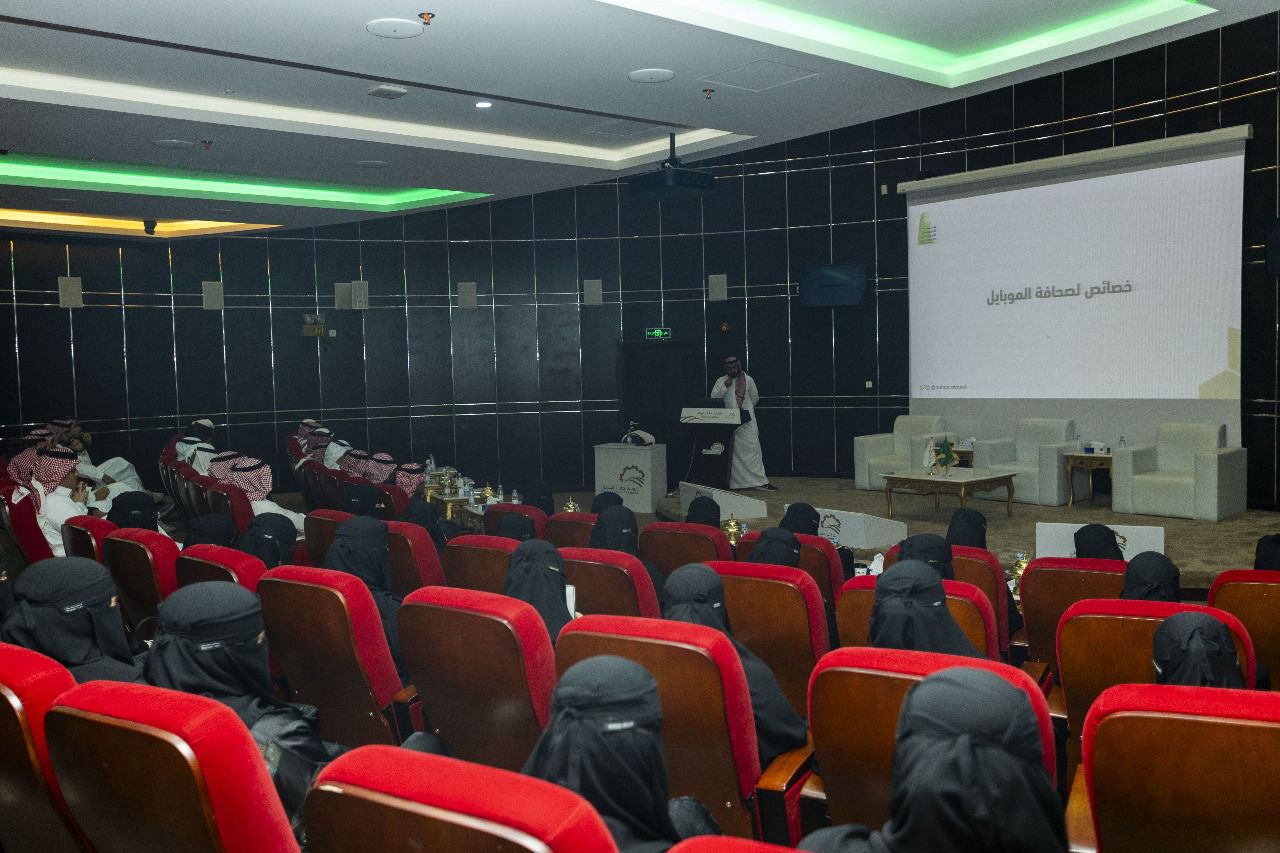 نظم فرع هيئة الصحفيين السعوديين بمحافظة حفرالباطن مساء اليوم ورشة عمل بعنوان “مهارات التصوير والإنتاج الإبداعي”، قدمها رئيس المركز الإعلامي بأمانة حفرالباطن، المدرب سلطان العايد، بحضور أكثر من 160 متدرب ومتدربة على مسرح الغرفة التجارية.