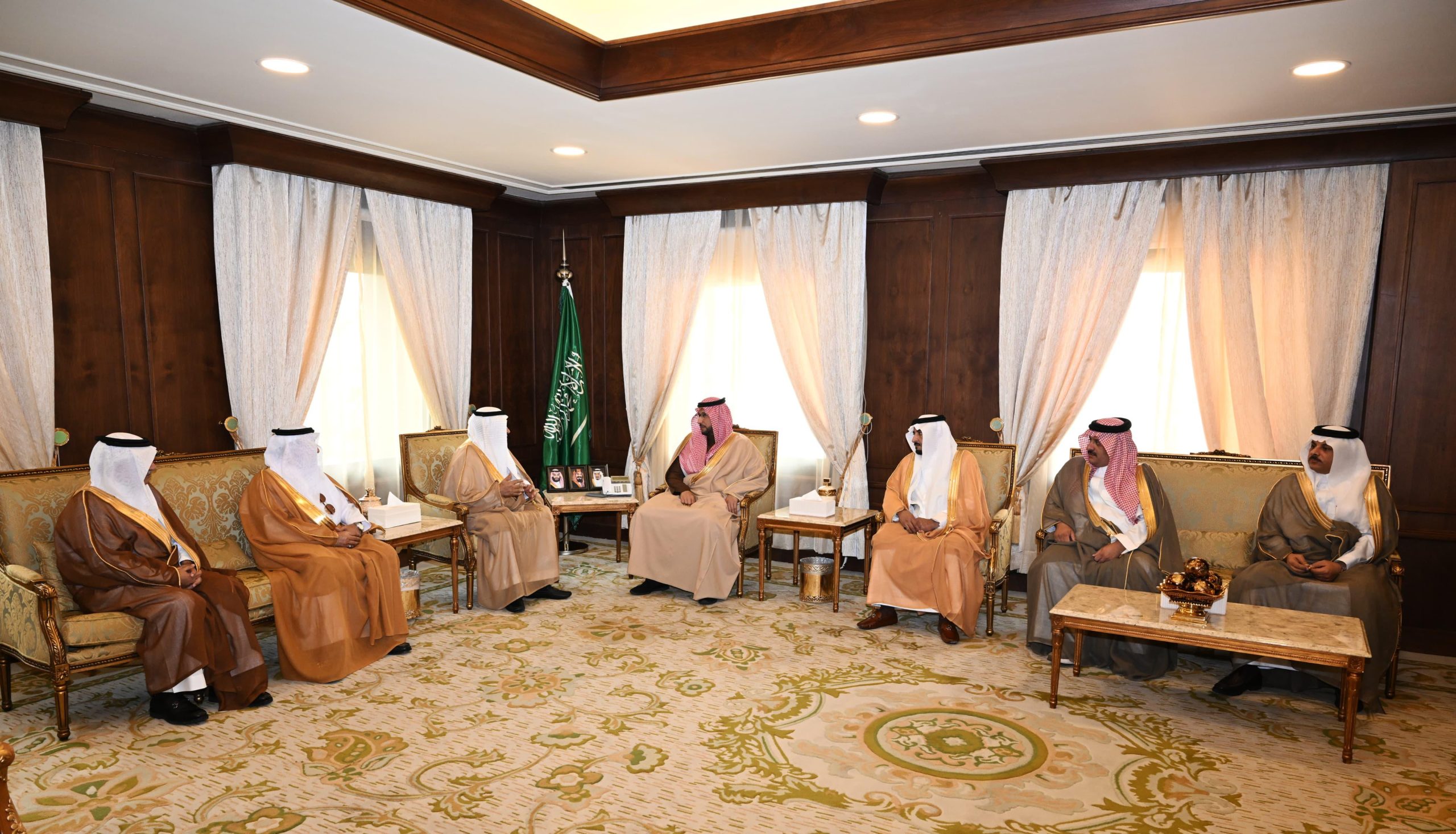 استقبل صاحب السمو الملكي الأمير خالد بن سطام بن سعود بن عبدالعزيز نائب أمير منطقة عسير، اليوم، في مكتبه بديوان الإمارة، رئيس مجلس إدارة الغرفة التجارية الصناعية بأبها، حسن بن معجب الحويزي ونائبيه وأعضاء مجلس الإدارة.
