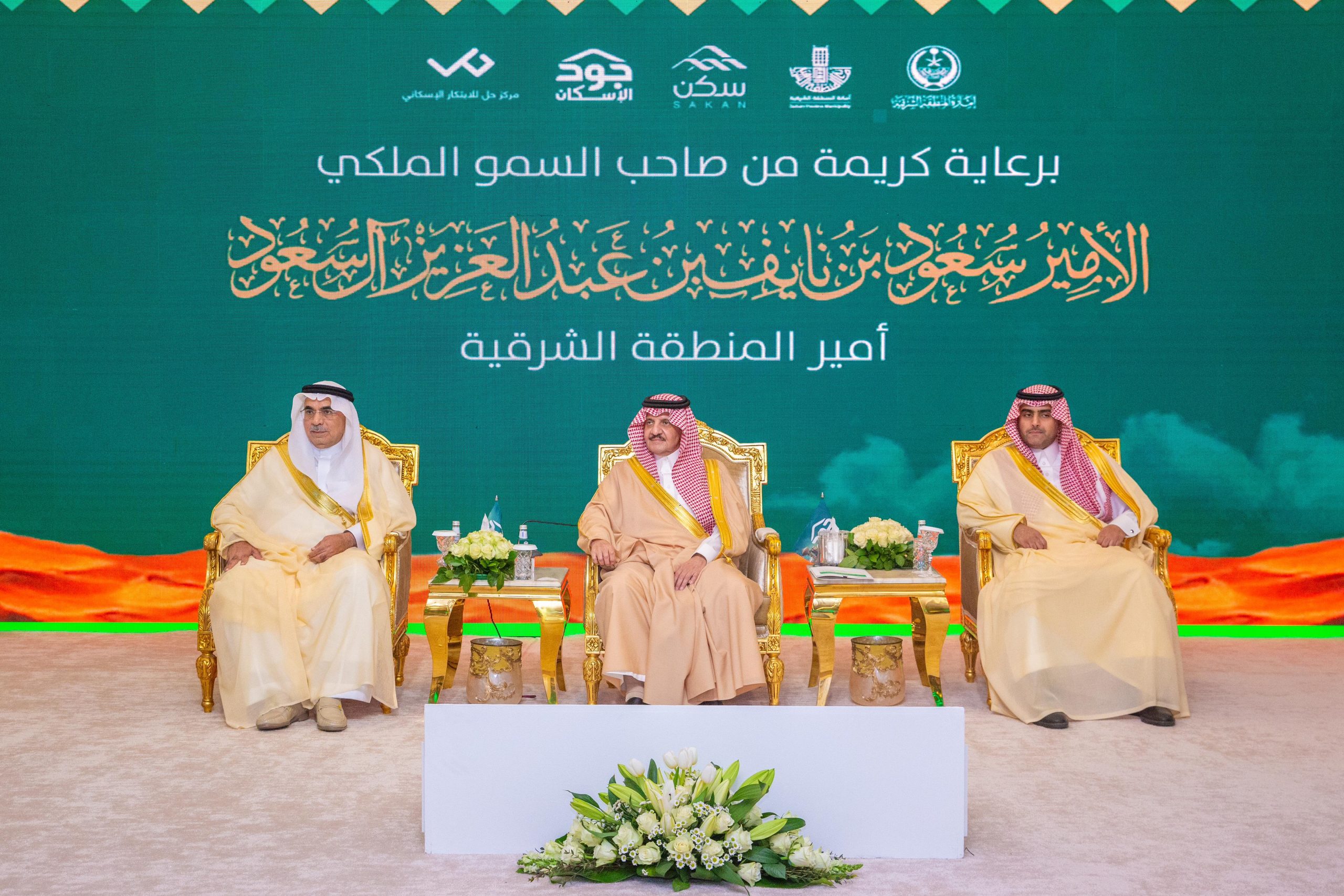 رعى صاحب السمو الملكي الأمير سعود بن نايف بن عبدالعزيز، أمير المنطقة الشرقية، مساء اليوم الأحد لقاء جود الشرقية وجود الأحساء وجود حفر الباطن، بحضور معالي أمين المنطقة الشرقية المهندس فهد الجبير ووكيل وزارة الشؤون البلدية والقروية والإسكان للقطاع الثالث والمشاركة المجتمعية طلال الخنيني وأمين عام مؤسسة الإسكان التنموي الأهلية سكن عبدالعزيز بن صالح الكريديس وأمناء أمانات المحافظات، وجمع من رجال الأعمال والمسؤولين.