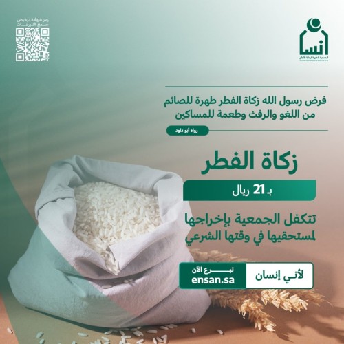 ودعت الجمعية الراغبين في توكيلها بدفع زكاة الفطر عبر منصة إنسان للتبرع https://ensan.sa/ar/shop/107