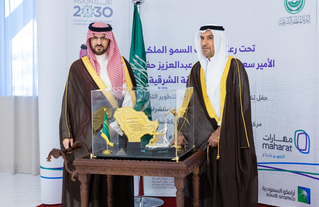 كرم صاحب السمو الملكي الأمير سعود بن بندر بن عبدالعزيز نائب أمير المنطقة الشرقية في ديوان الإمارة اليوم الإثنين الطلاب الخريجين من مبادرة التطوير التقني والمهني المبتكرة التي اطلقها مركز مهارات للتدريب الانشائي بالنعيرية بالتعاون مع شركة ساينوبك نانجينغ للهندسة والمقاولات بجمهورية الصين.