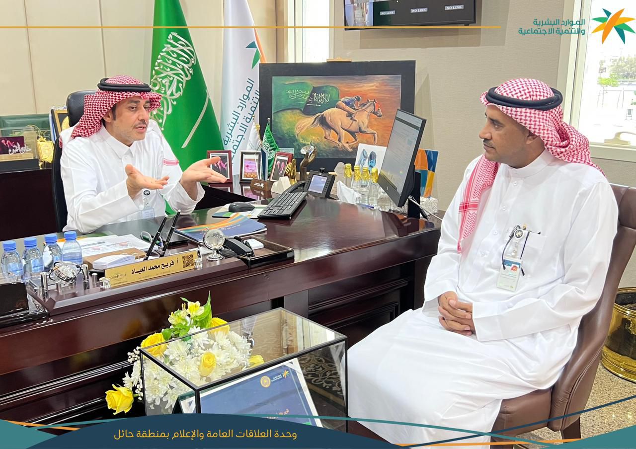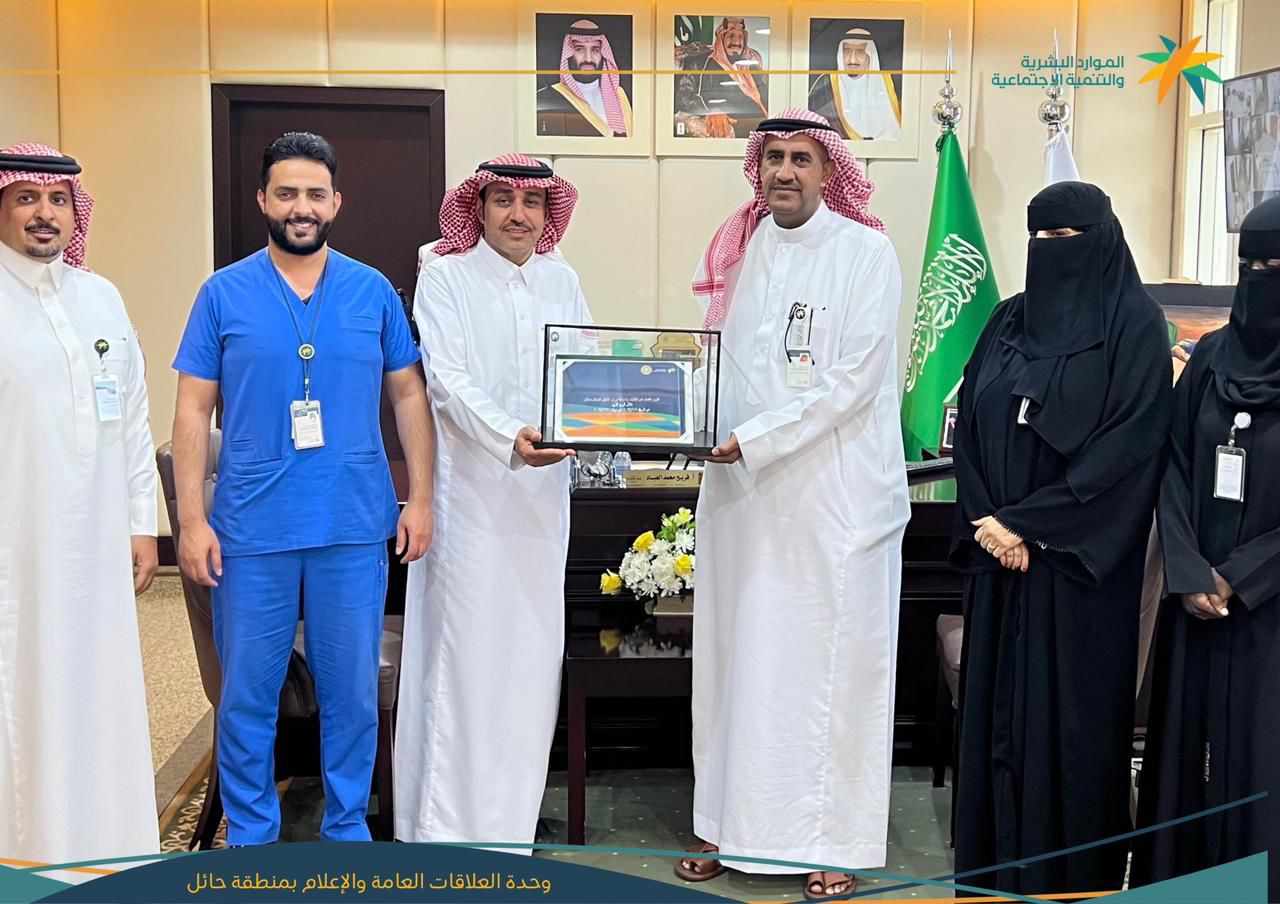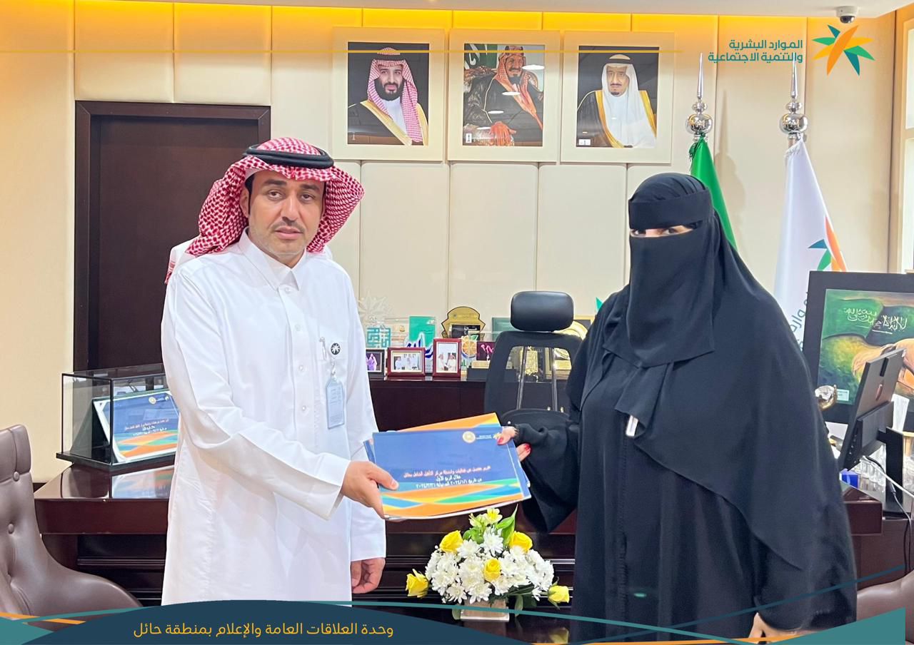 تسلّم سعادة مدير عام فرع وزارة الموارد البشرية والتنمية الاجتماعية بمنطقة حائل فريح بن محمد العيّاد تقرير الربع الأول للعام 2024 الخاص بمركز التأهيل الشامل من مدير المركز حمود الهديرس وبحضور مشرفة القسم النسائي بالمركز هدى الجهني والاخصائية الاجتماعية ماجدة طالب ورئيس وحدة التأهيل المجتمعي بالمركز عبدالله الهمزاني ورئيس وحدة العلاج الطبي سعود العديم .