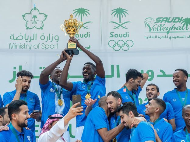 توج رئيس مجلس إدارة الاتحاد السعودي لكرة الطائرة الدكتور خالد الزغيبي فريق الهلال بكأس بطولة الدوري الممتاز والميداليات الذهبية لهذا الموسم رغم خسارته من مضيفه الأهلي بثلاثة أشواط مقابل شوط في ختام مسابقة الدوري الممتاز التي أقيمت على صالة وزارة الرياضة بجدة جاءت نتائح الأشواط