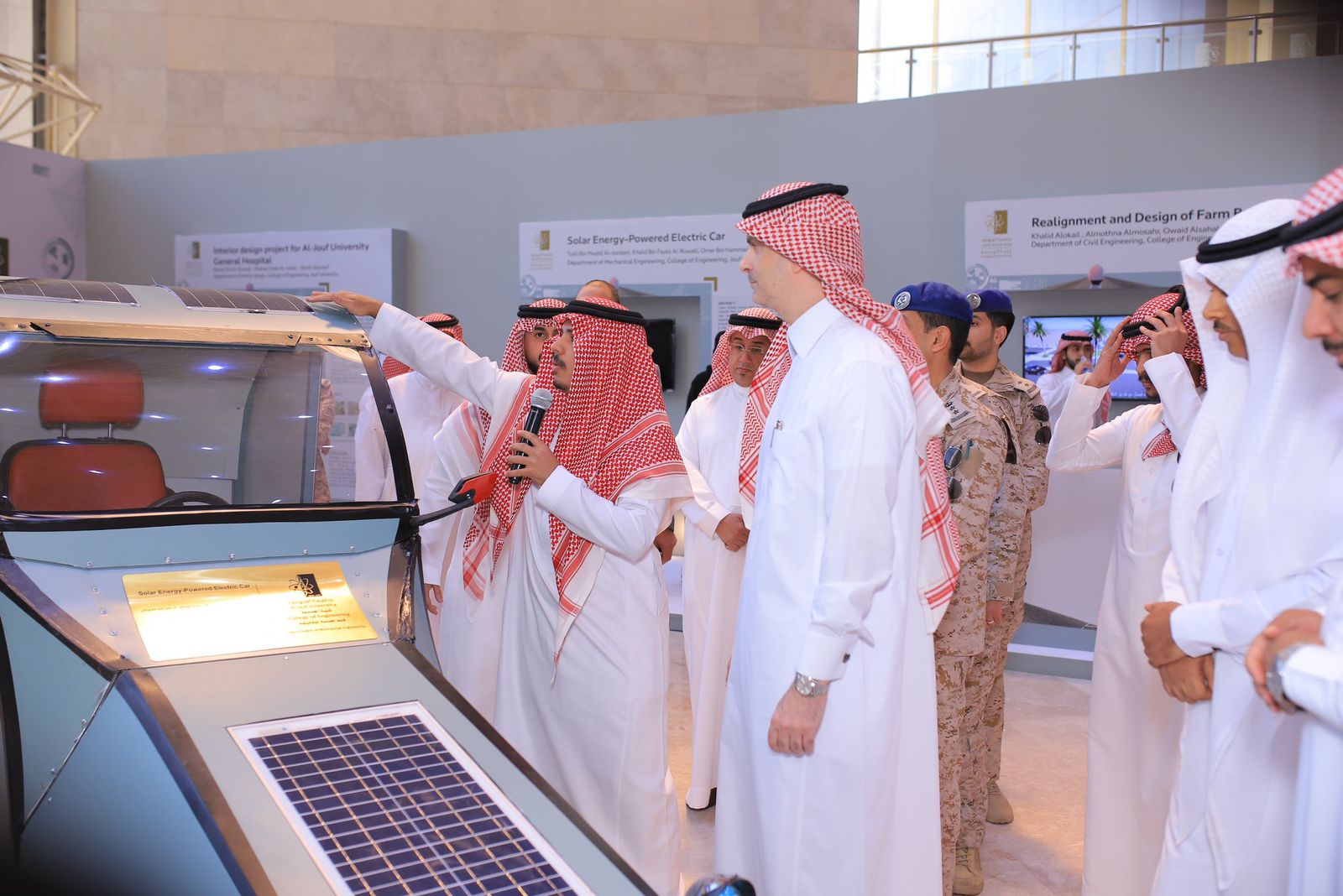 وقد اشتمل المعرض على عدد من المشاريع الابتكارية، والمبادرات، حيث شمل المعرض (23) مشروعًا موزعة حسب المجالات الحيوية والتنمية المستدامة، فقد اشتمل على (7) مشاريع في الهندسة الكهربائية، و (6) مشاريع في الهندسة المدنية، و (4) مشاريع في الهندسة الميكانيكية، و (6) مشاريع في التصميم الداخلي وتصميم النزل والمنتجعات، كما اشتمل على ابتكار حول آلة لجني التمور، تعمل بالطاقة الشمسية، ومبادرة في مجال السلامة المرورية داخل مدن منطقة الجوف، وتهدف المبادرة إلى تحقيق السلامة ومراجعة التخطيط والتصميم الهندسي لعدد من المواقع الحيوية ذات الكثافة المرورية العالية والتي تحتاج إلى إعادة دراسة وتقديم إجراءات علاجية وتصاميم هندسية.