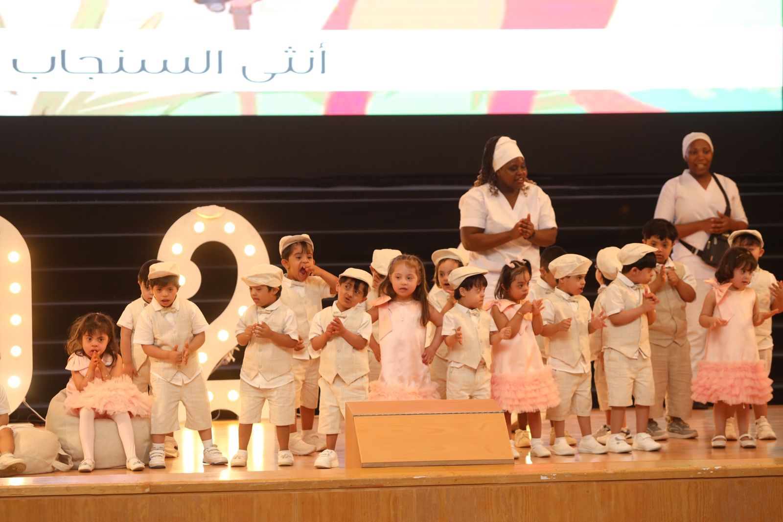 بدأ الحفل بالسلام الملكي، ثم آيات من الذكر الحكيم، بعد ذلك عرض بعض الاستعراضات المسرحية وكذلك مسرحية زين وفقرة أزياء الثمانينات و العرضة النجدية ، قدمها عدد من منسوبي المركز اطفال متلازمة داون بكل اقتدار و اتقان .