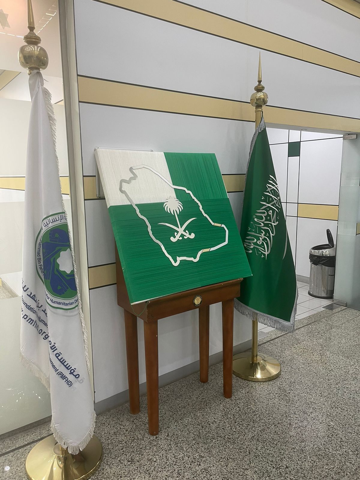 وأنتج أعضاء وعضوات مركز بركة لذوي متلازمة داون ومركز رؤية لذوي الإعاقة البصرية لوحة فنية من الخيط واللوح تزينت بخريطة المملكة ،