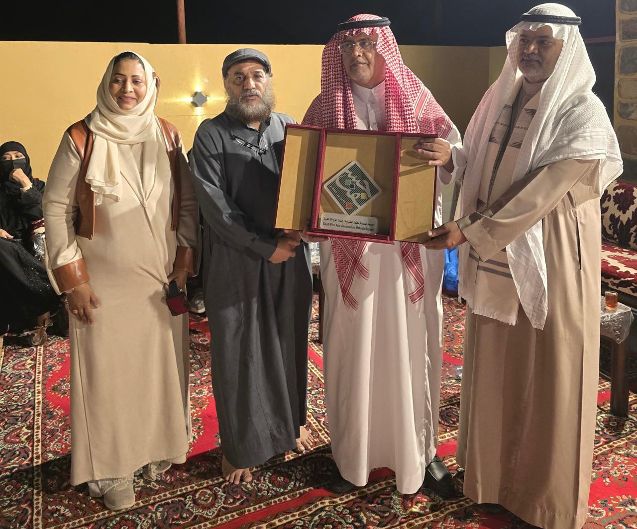 قدم الفنان التشكيلي نائب رئيس الجمعية السعودية للفنون التشكيلية جسفت مكة الأستاذ والفنان : شاهر الشهري لوحة تذكارية ودرع جمعية جسفت فرع مكة لرجل الأعمال : عائش عبدالله الطلحي