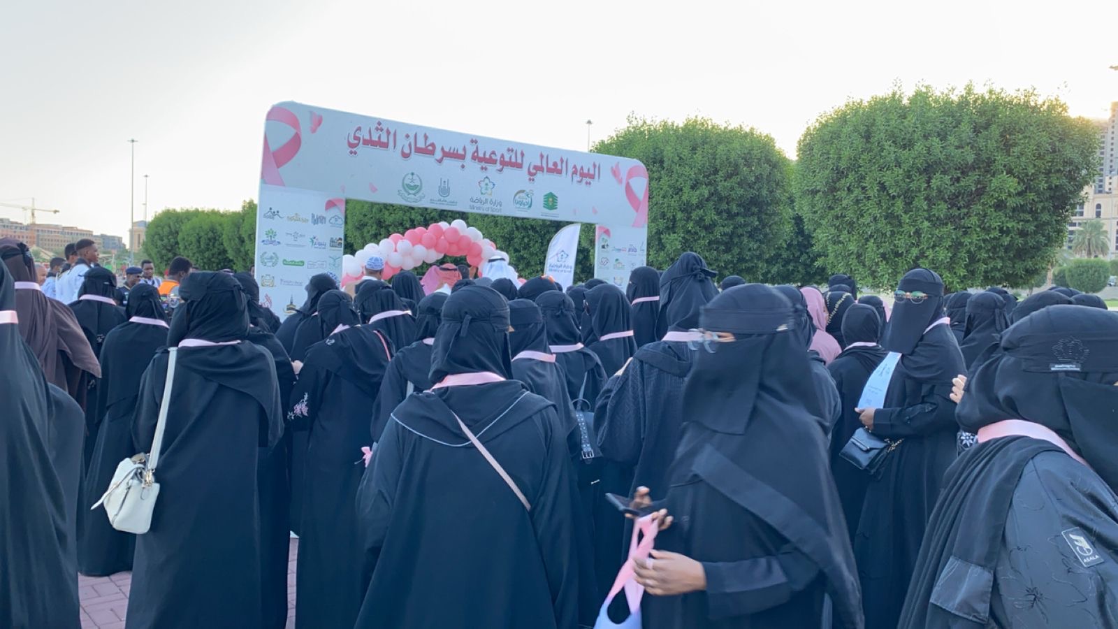 برعاية سمو الأميرة ريم بنت فيصلنفذت جمعية مراكز الأحياء فرع العاصمة المقدسة مبادرة التوعية بسرطان الثدي من خلال مسيرة لنساء مكة المكرمة بمختلف أعمارهن للتوعية بسرطان الثدي .