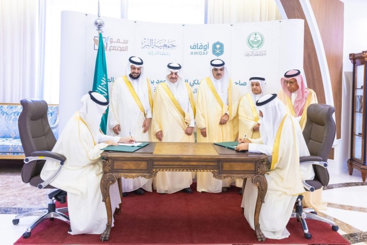 بارك صاحب السمو الملكي الأمير سعود بن نايف بن عبدالعزيز أمير المنطقة الشرقية في مكتب سموه بديوان الإمارة اليوم الأحد توقيع اتفاقية ثلاثية بين الهيئة العامة للأوقاف وشركة سمو المجتمع وجمعية البر بالمنطقة الشرقية لدعم استكمال وتشغيل مشروع جامع ومركز إكرام في مدينة الدمام ، بحضور سعادة محافظ الهيئة العامة للأوقاف الأستاذ عماد بن صالح الخراشي .
